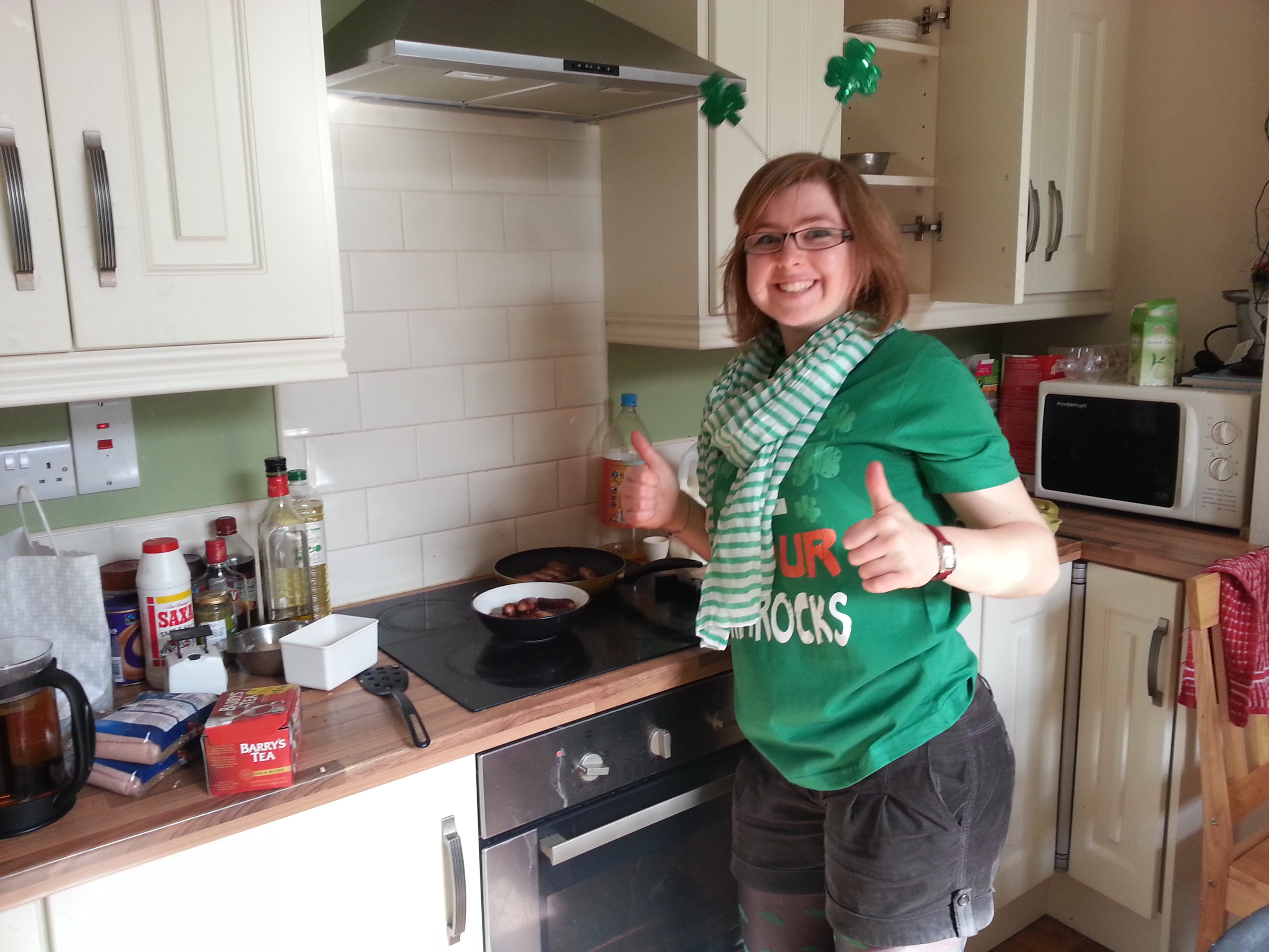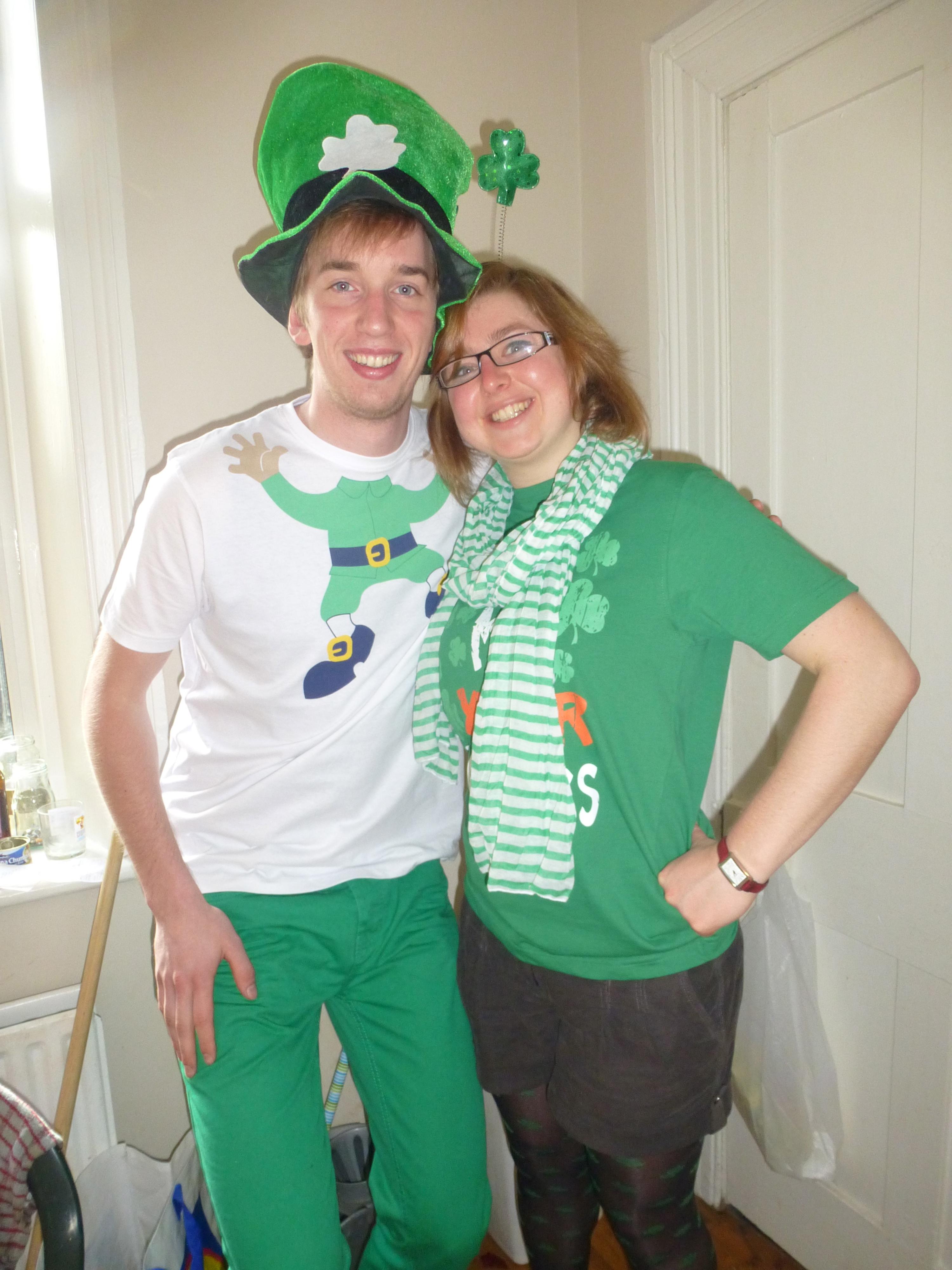 Pour ma part j’avais des collants trèfles, un serre tête trèfle, un t shirt vert et une écharpe rayée !!