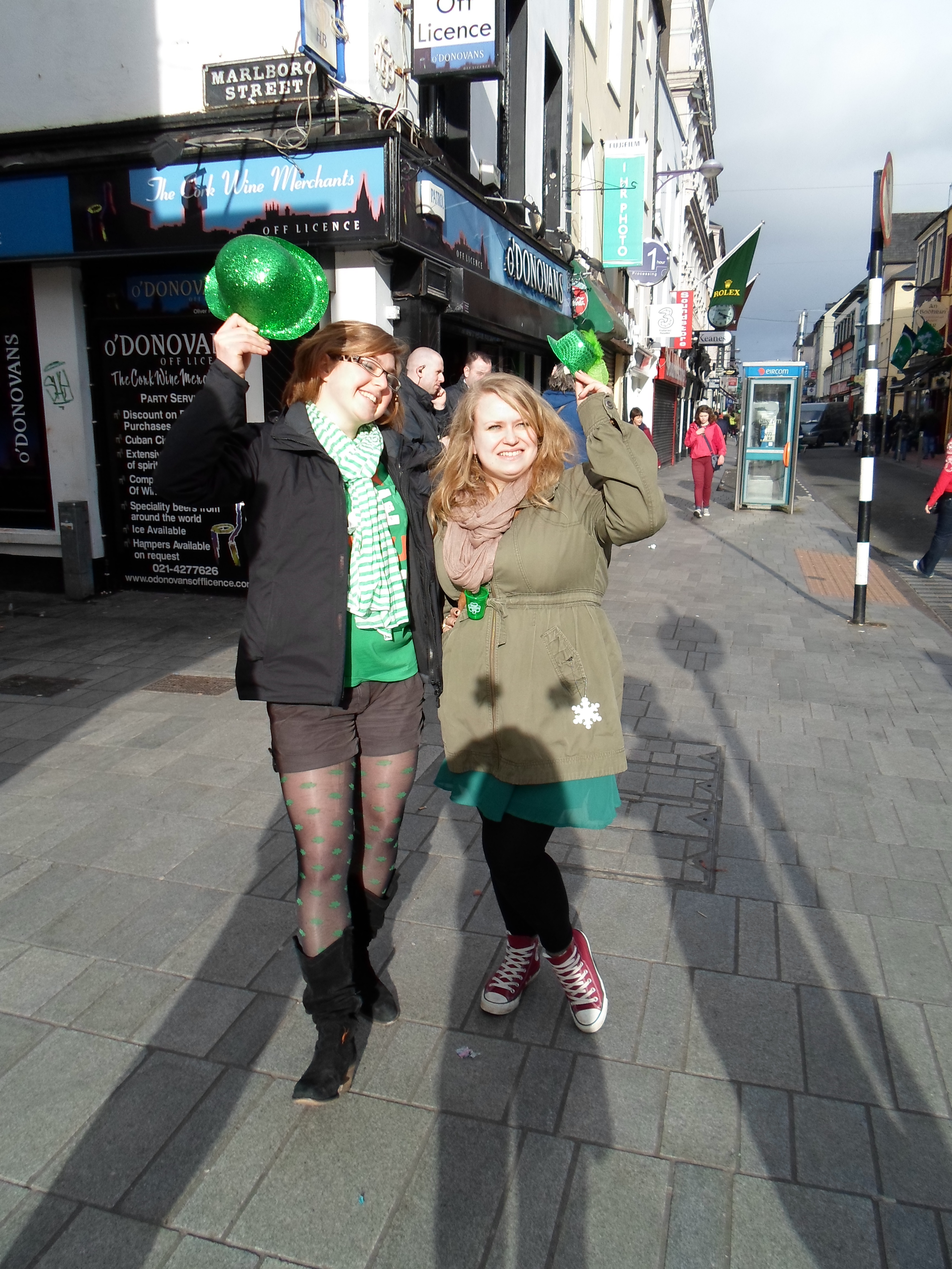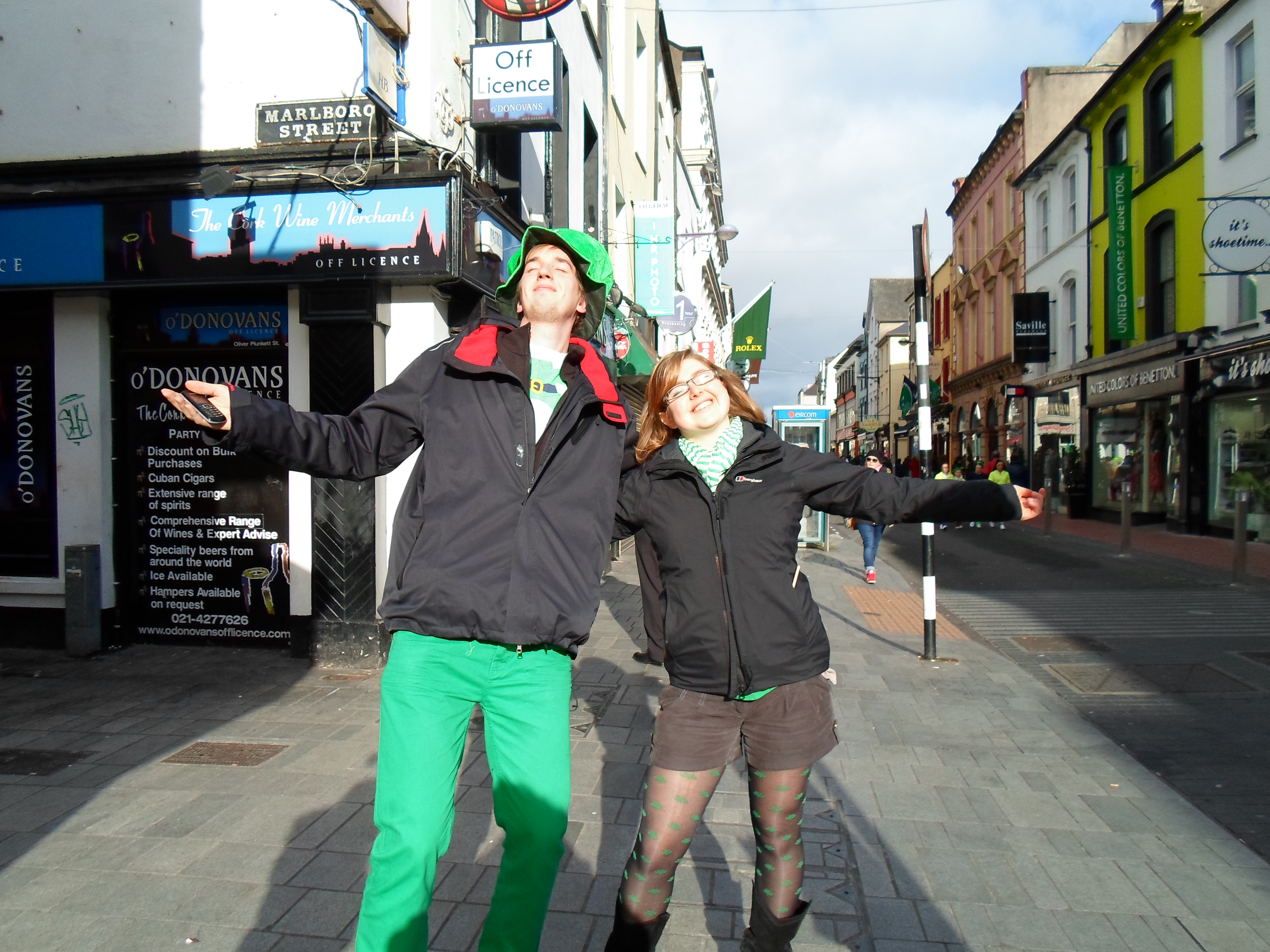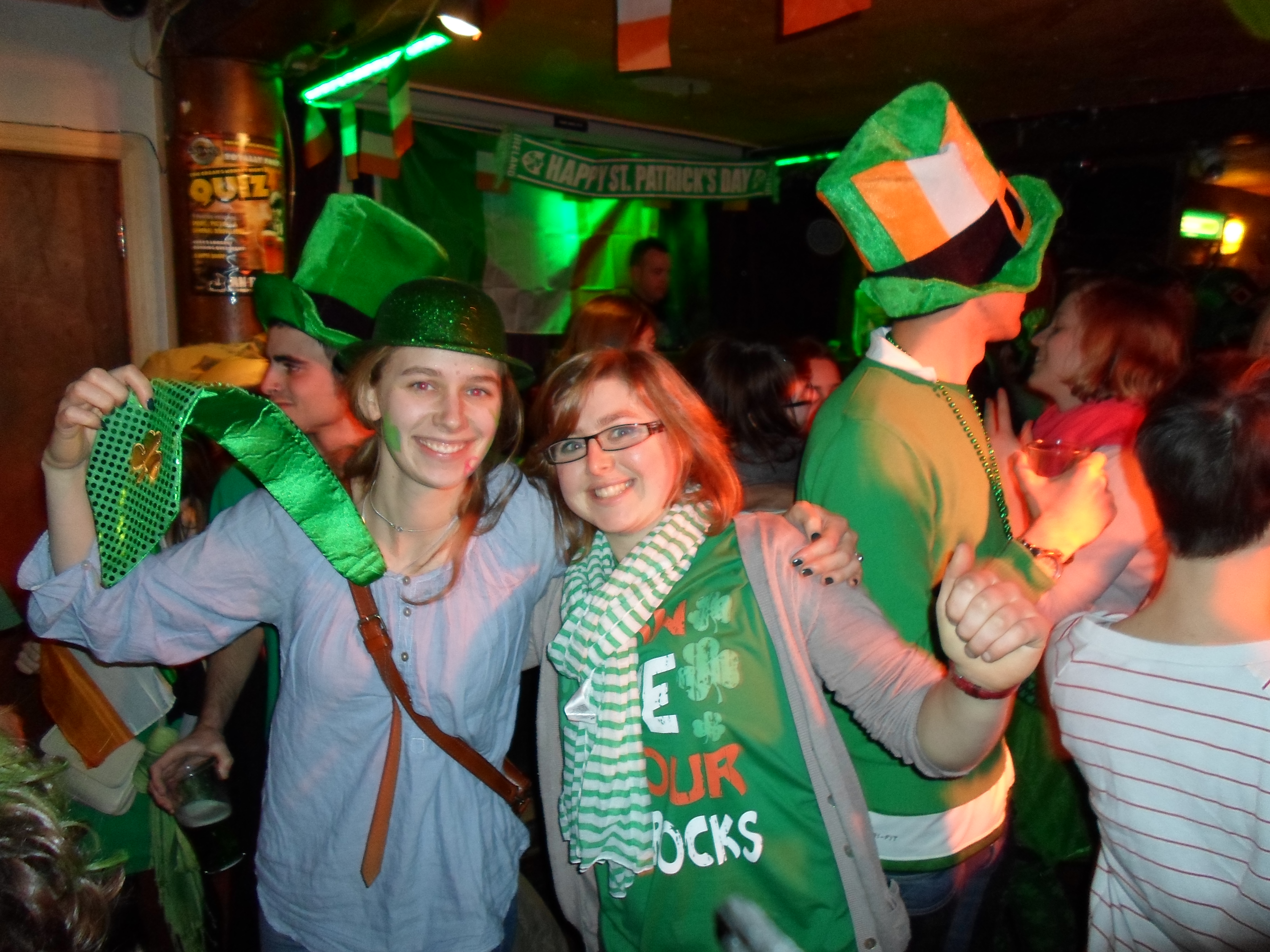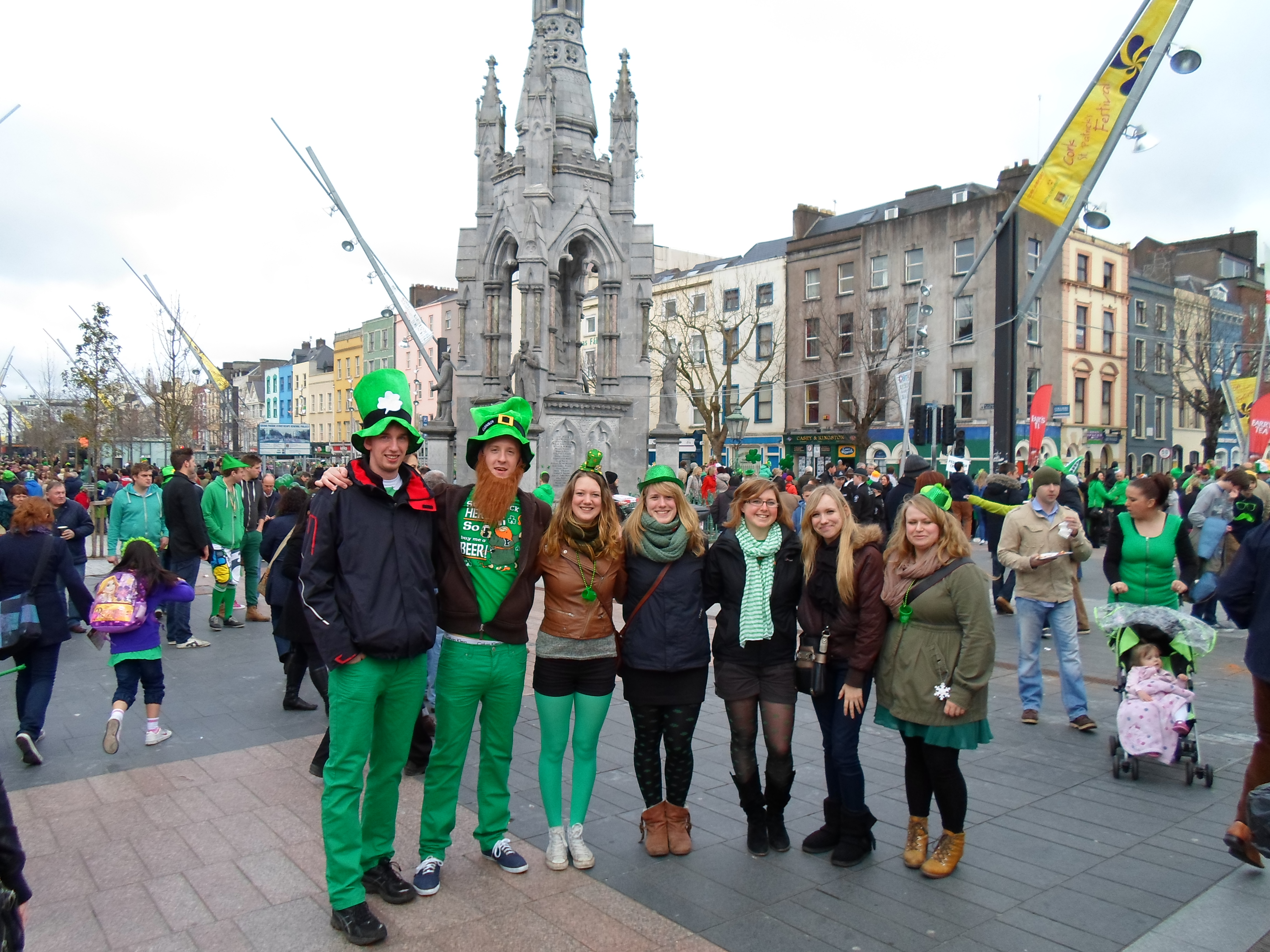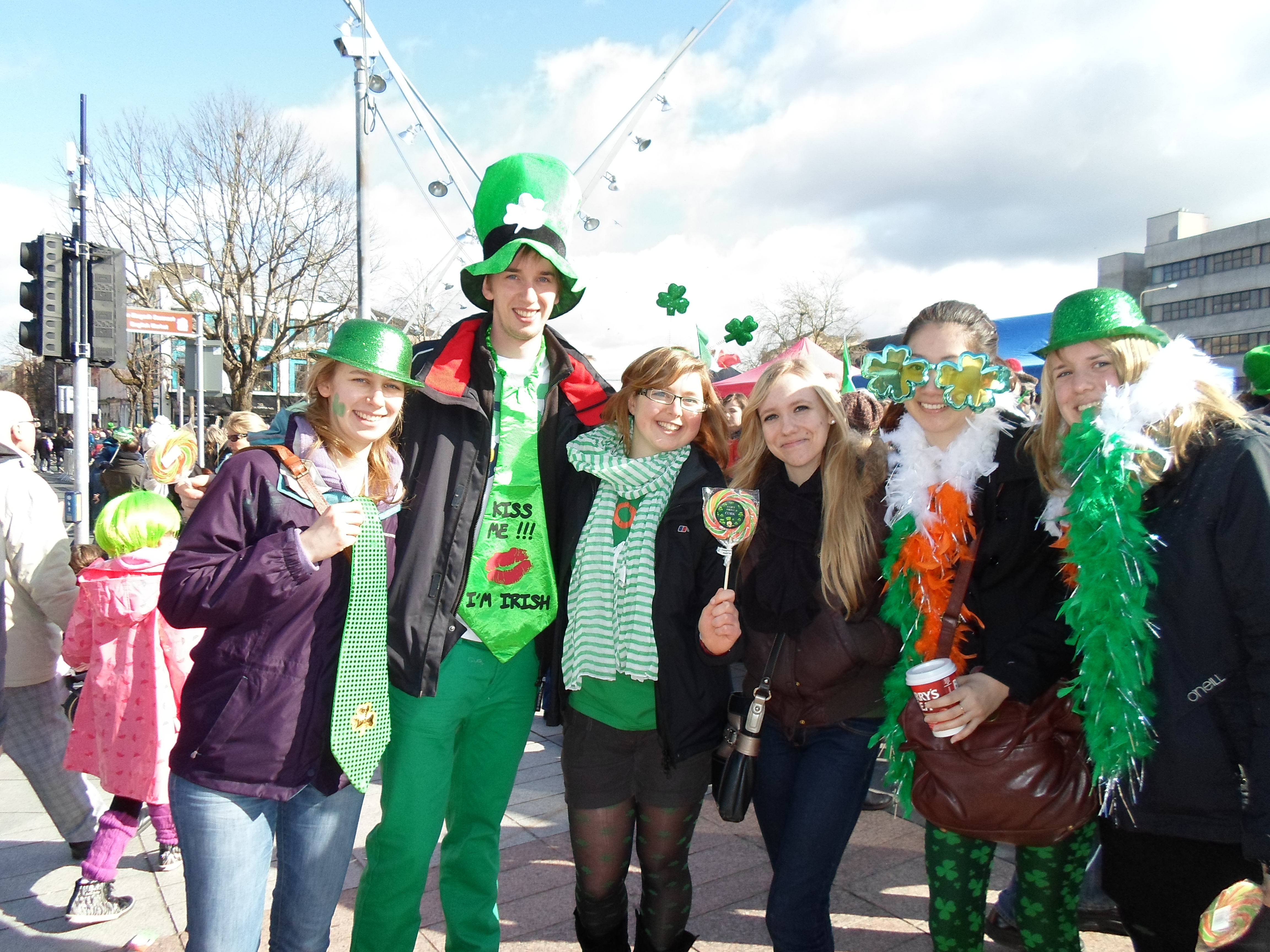 Jour de la fête nationale irlandaise bien sûr. Ambiance déjantée dans les rues ! Tout le monde en vert ! C’était assez comique parce que mes colloc n’étaient pas en vert mais avec mes potes Erasmus on était vétus de la tête au pieds on vert !