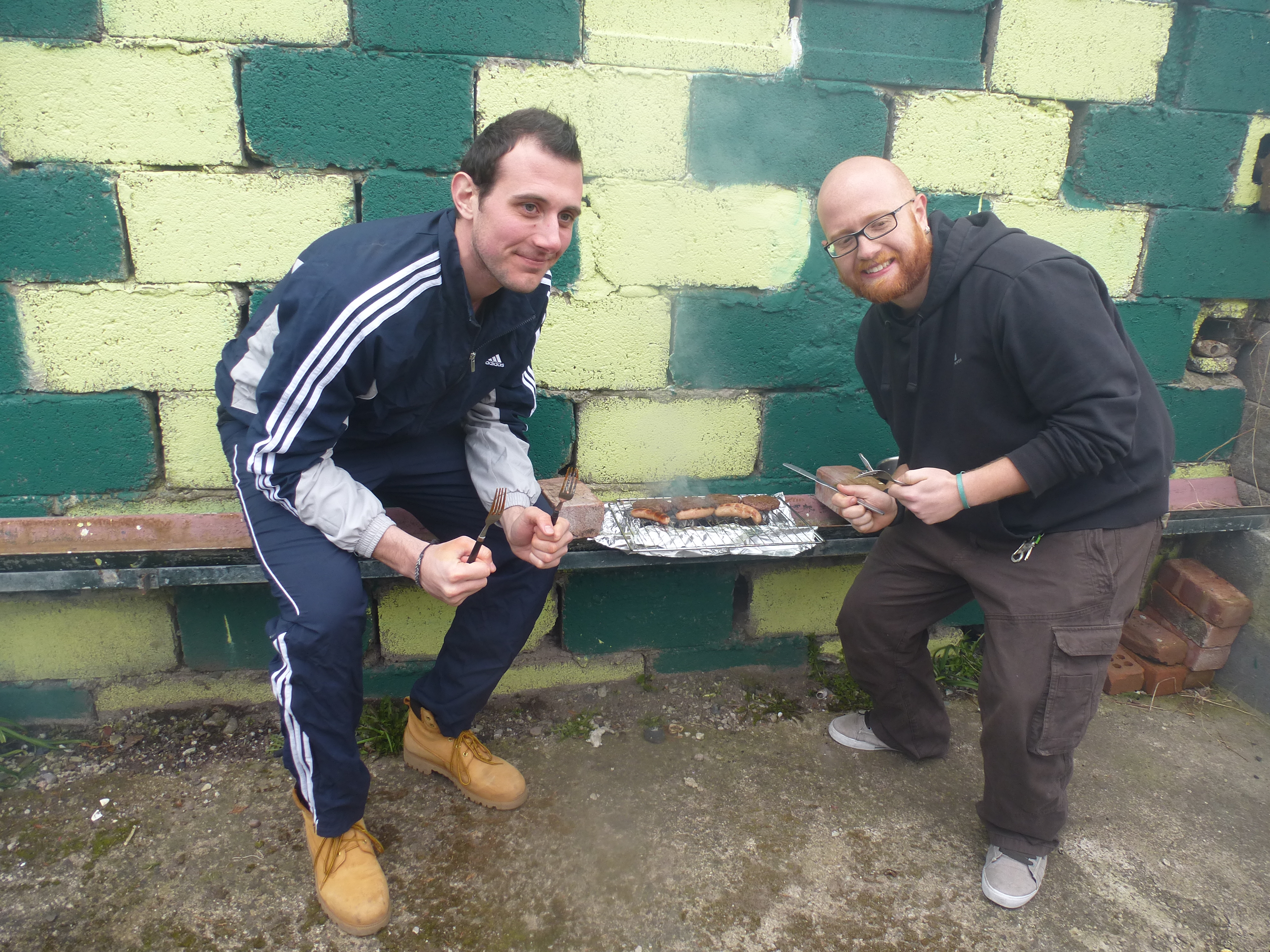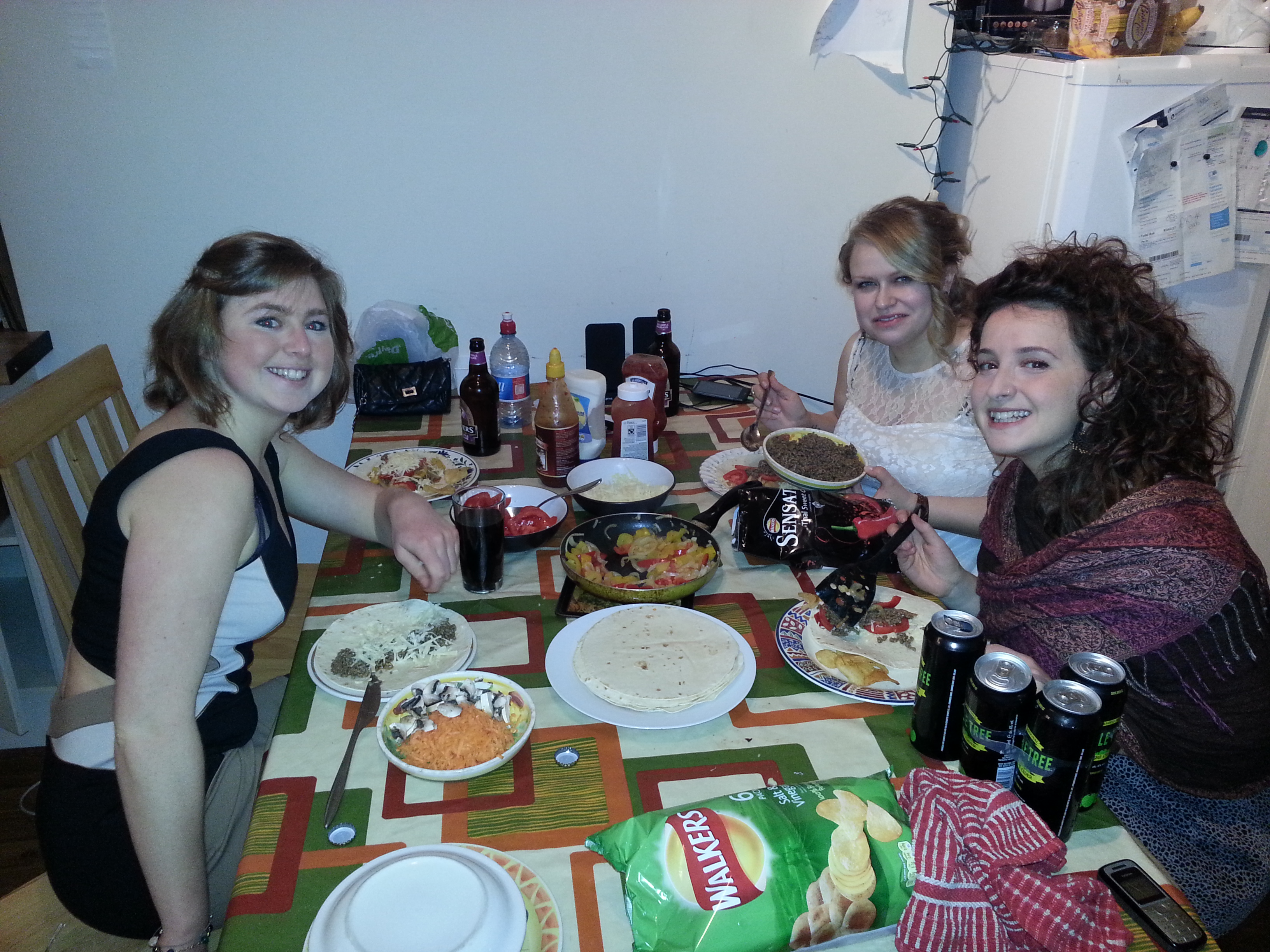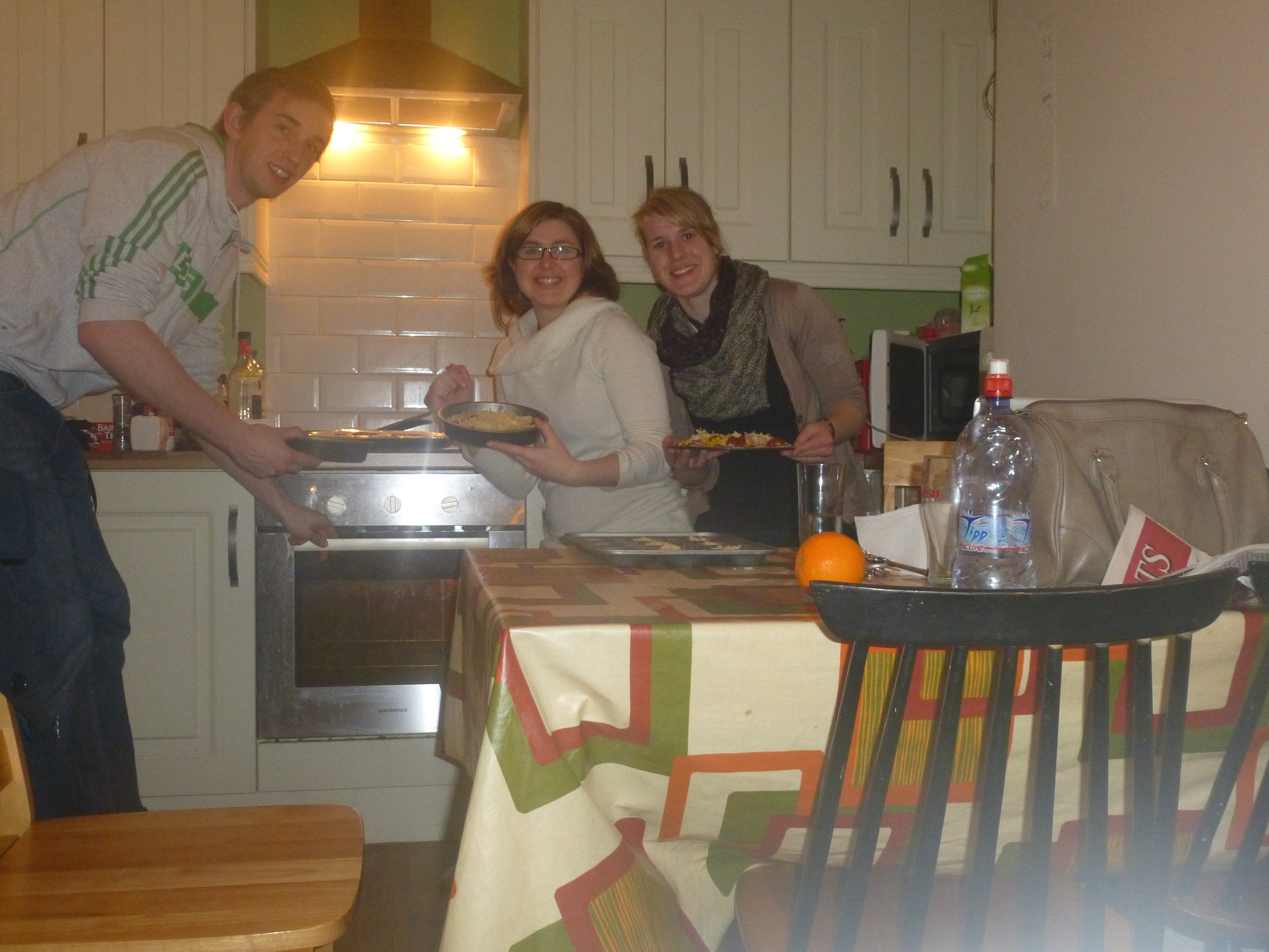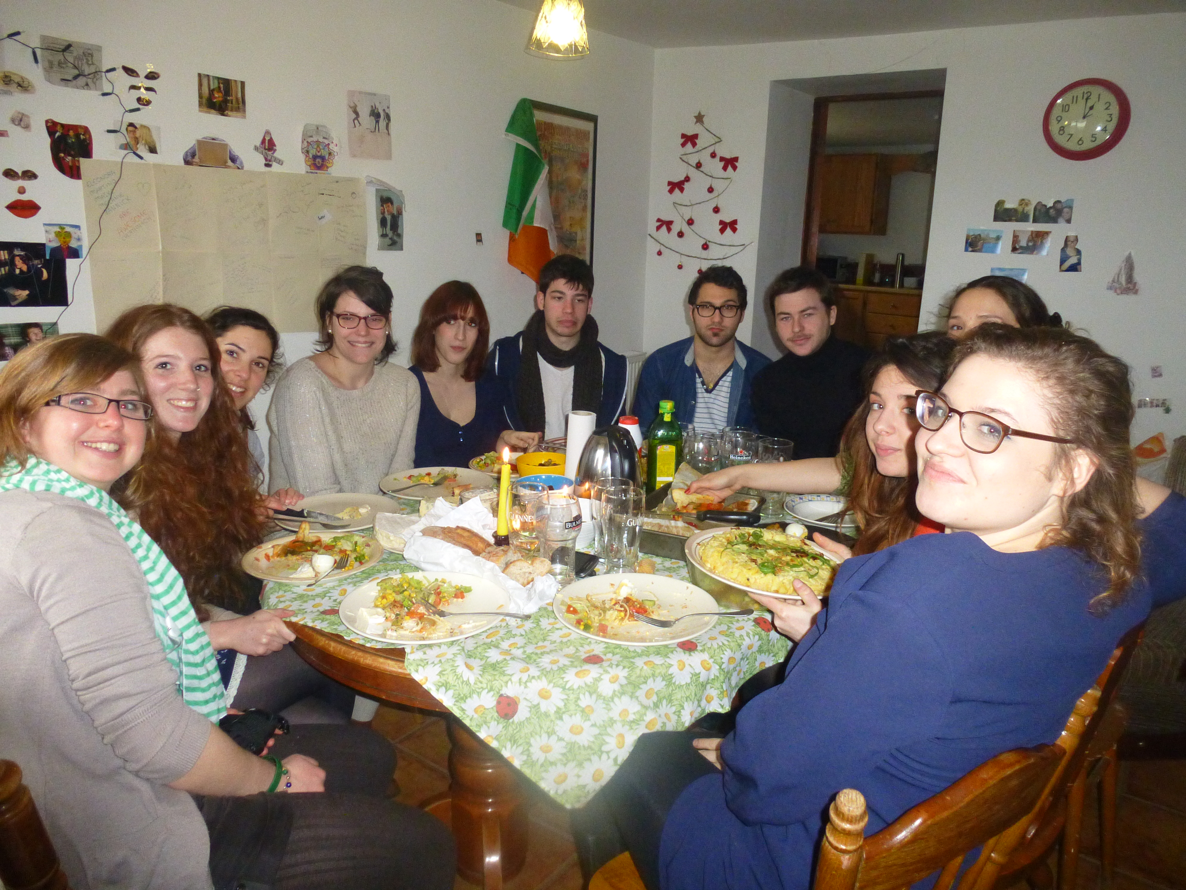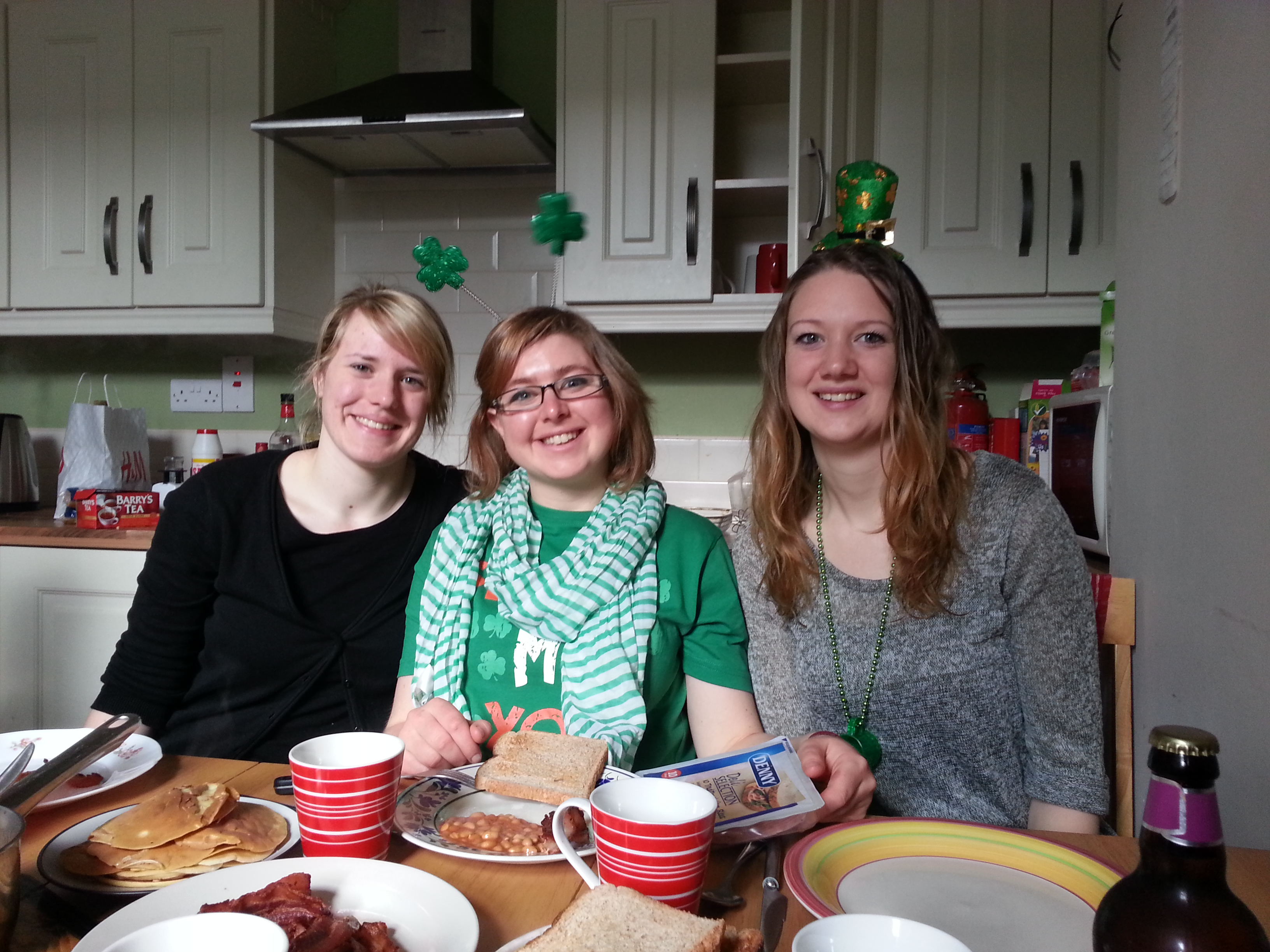 Irish Breakfast : Avec Malin, Ulli, Helle, Kaylee, Kristin et Justus. On a fait ça dans les normes : beans, scrambled eggs, toasts, bacon, tea, sausages et la touche françaises avec les pancakes.