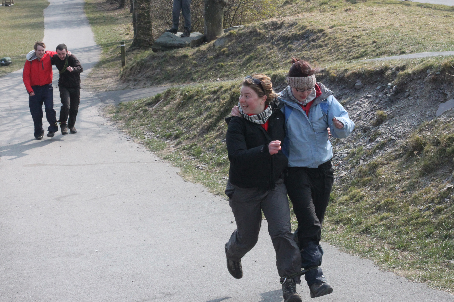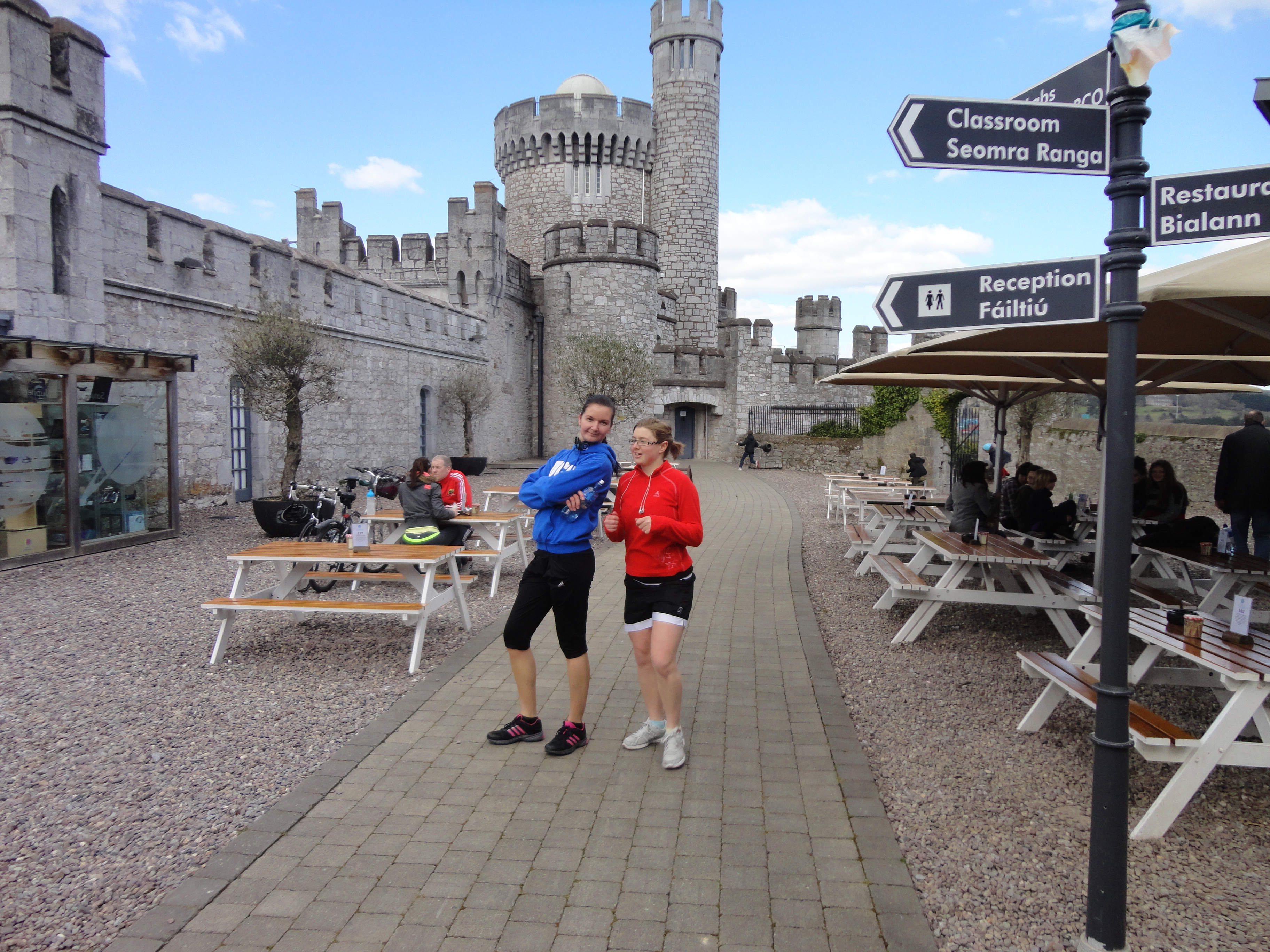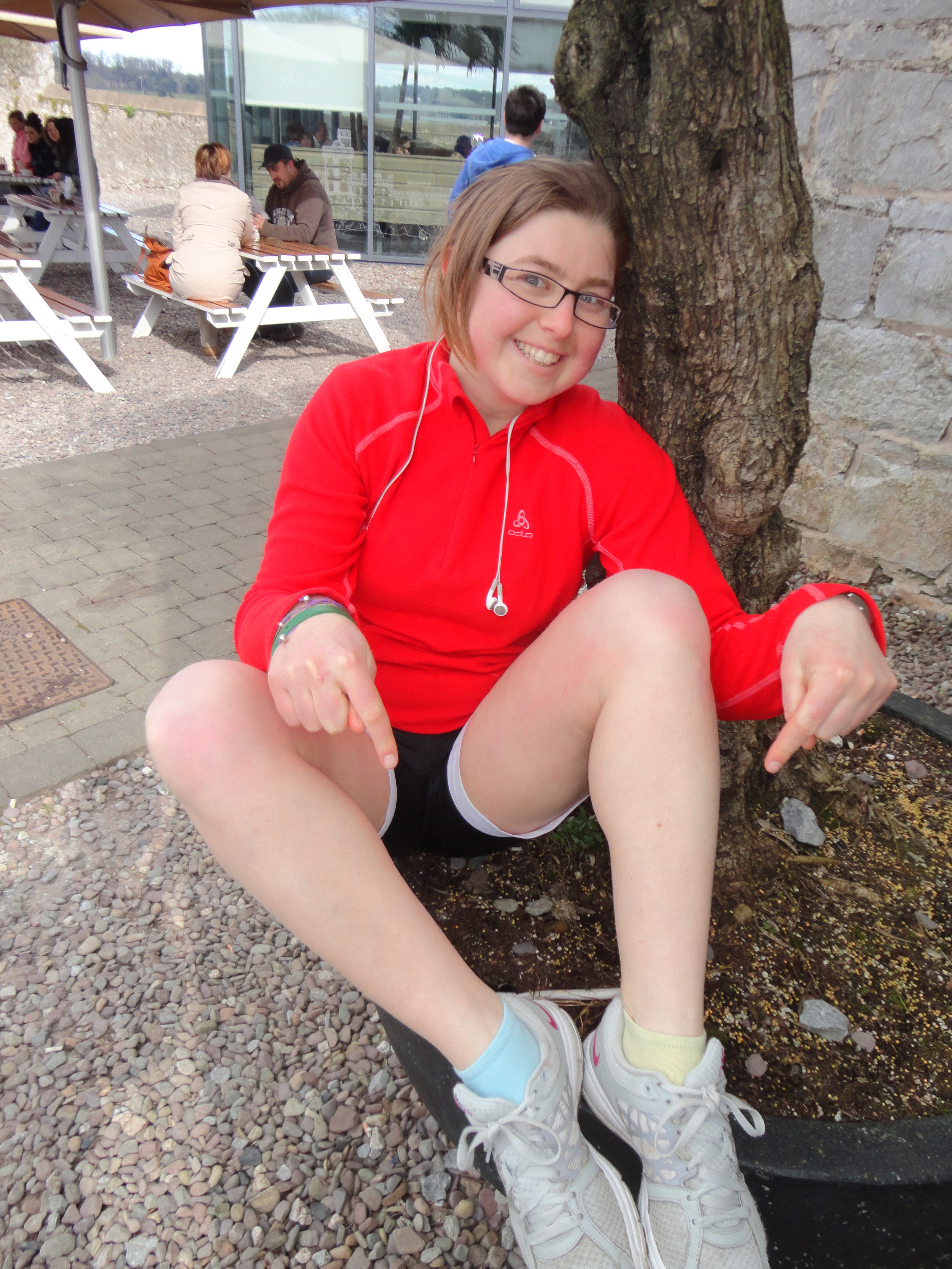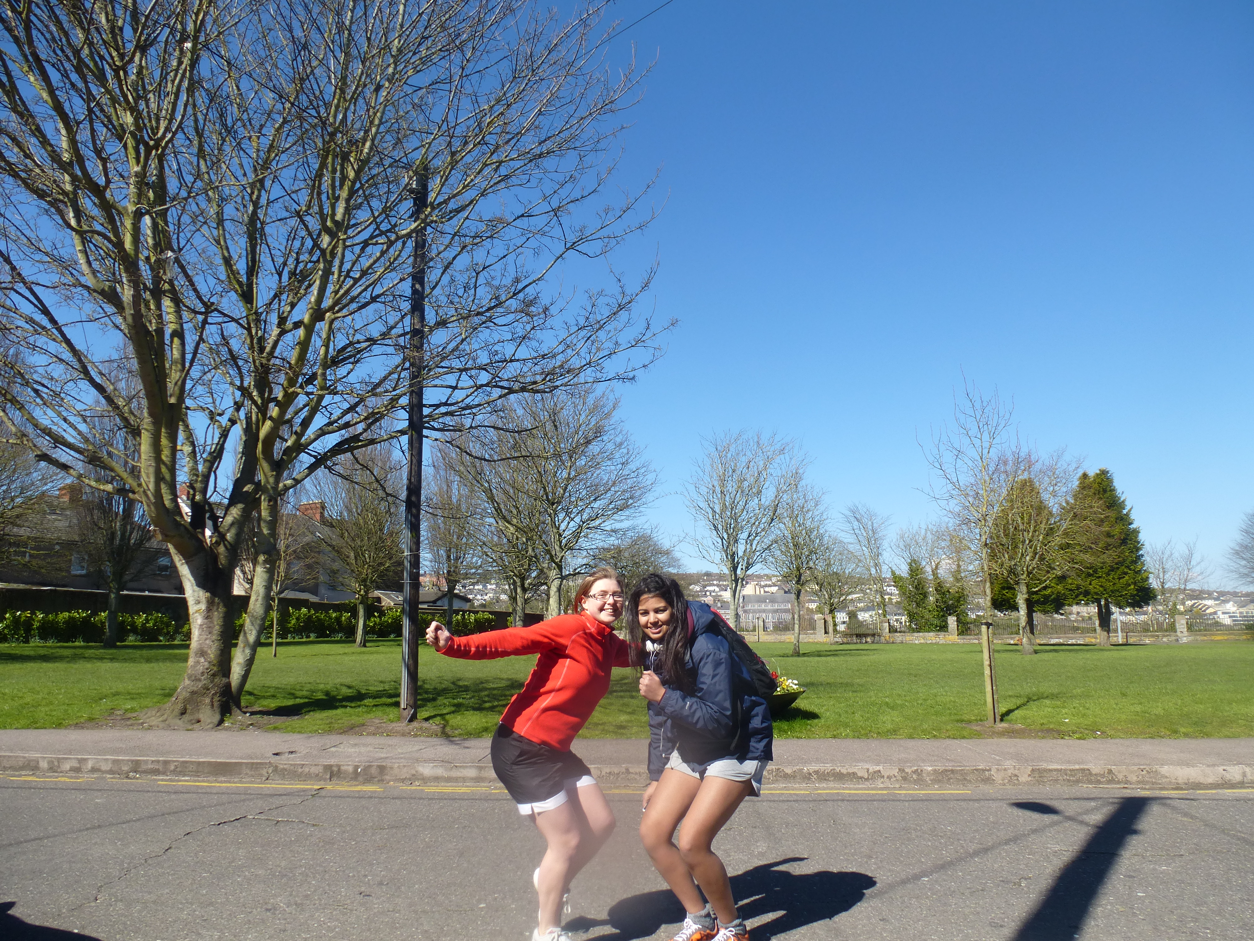 Alors c’est parti pour une course à 2 pieds liés !! Good craic. Petit échauffement avec Michelle ! Parfait synchronisation. On courait comme si on avait les pieds tout à fait libres =)