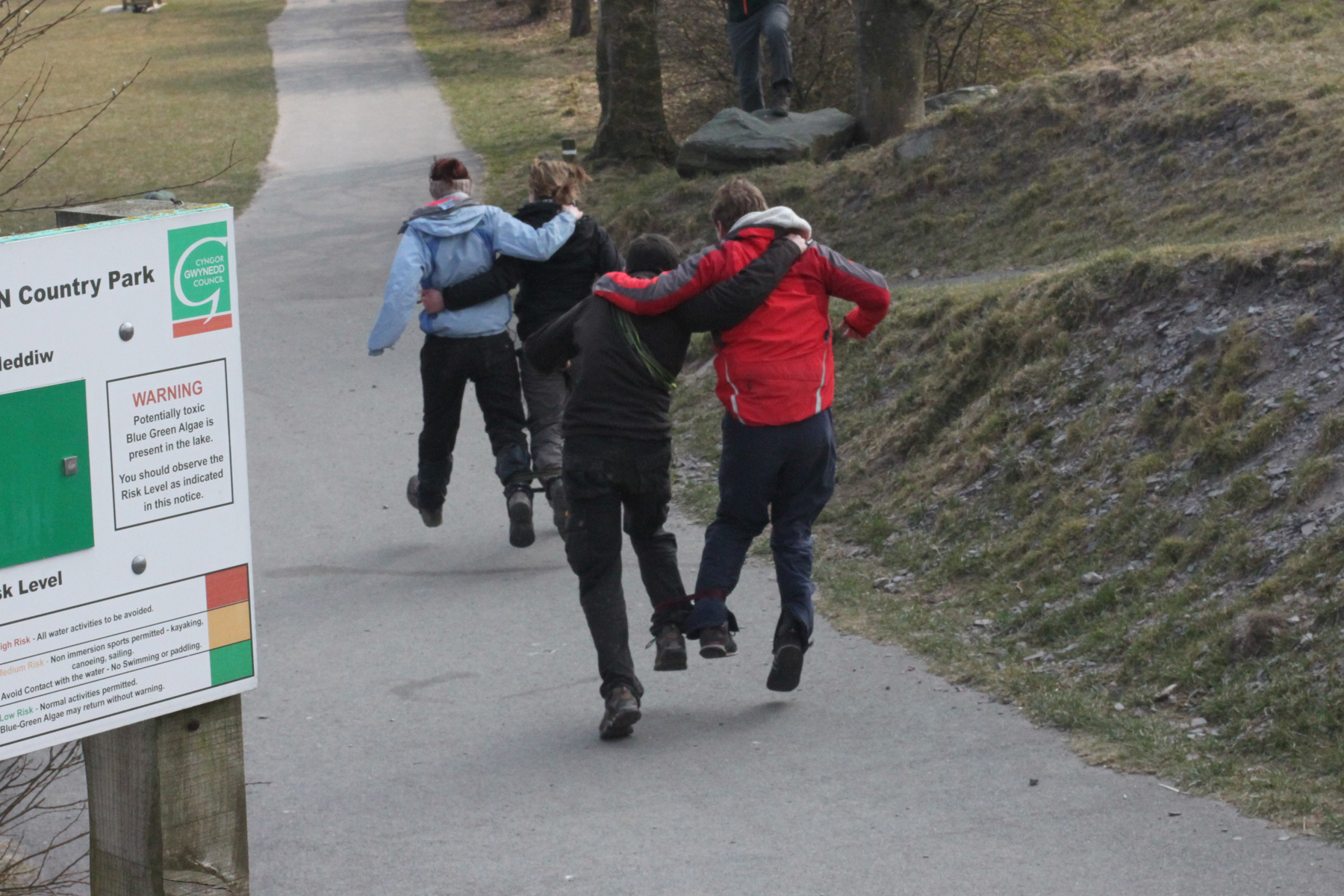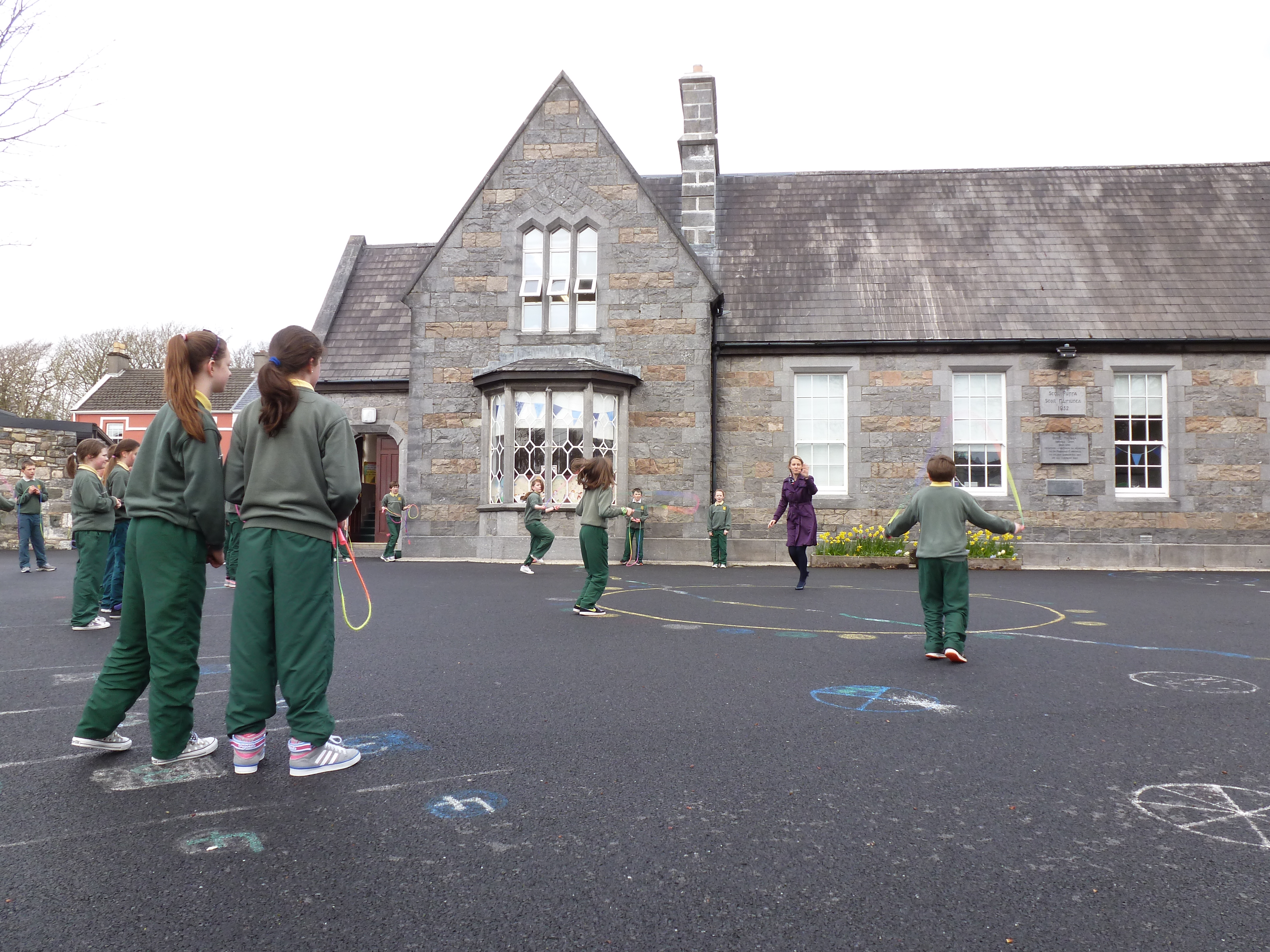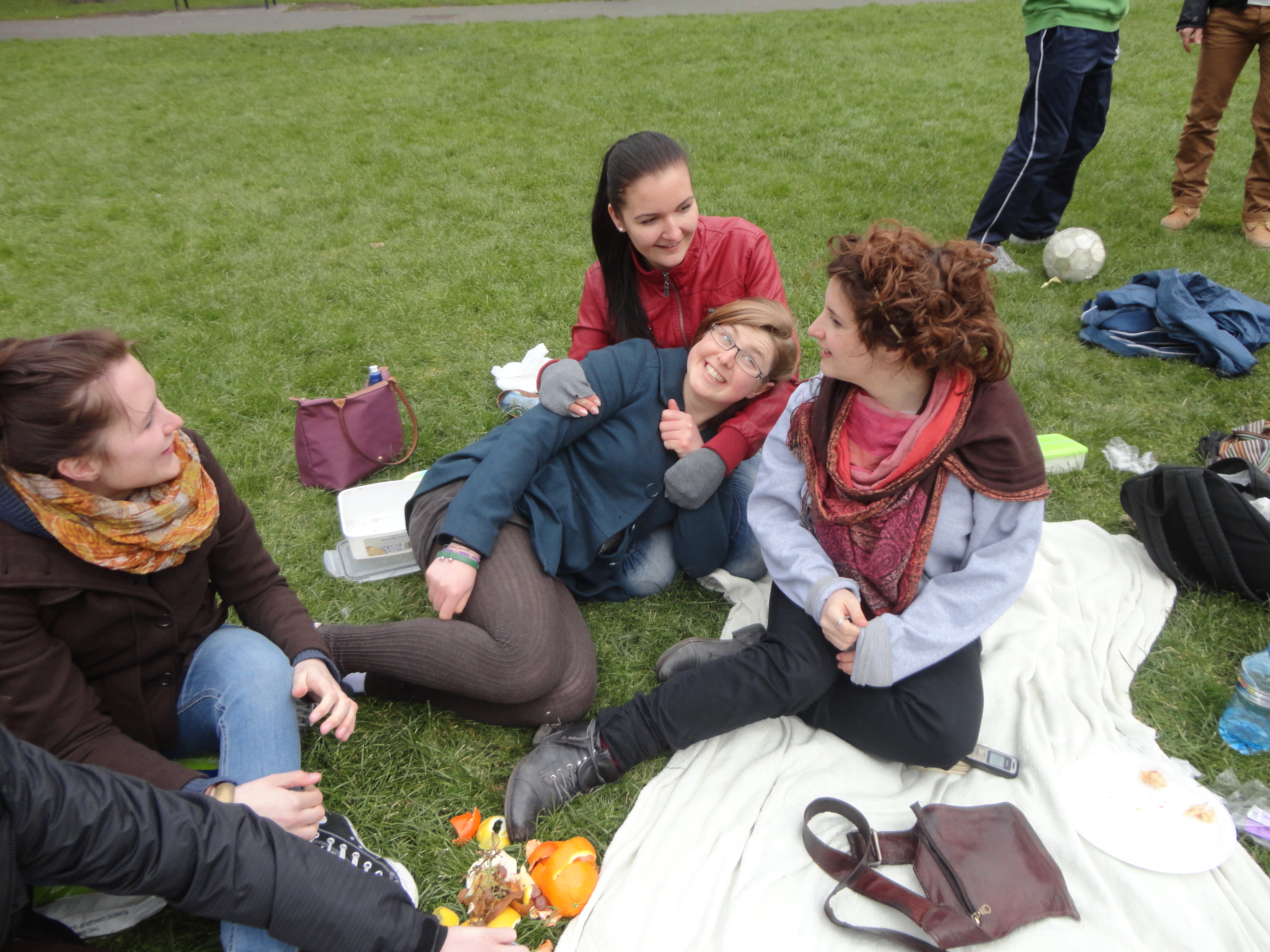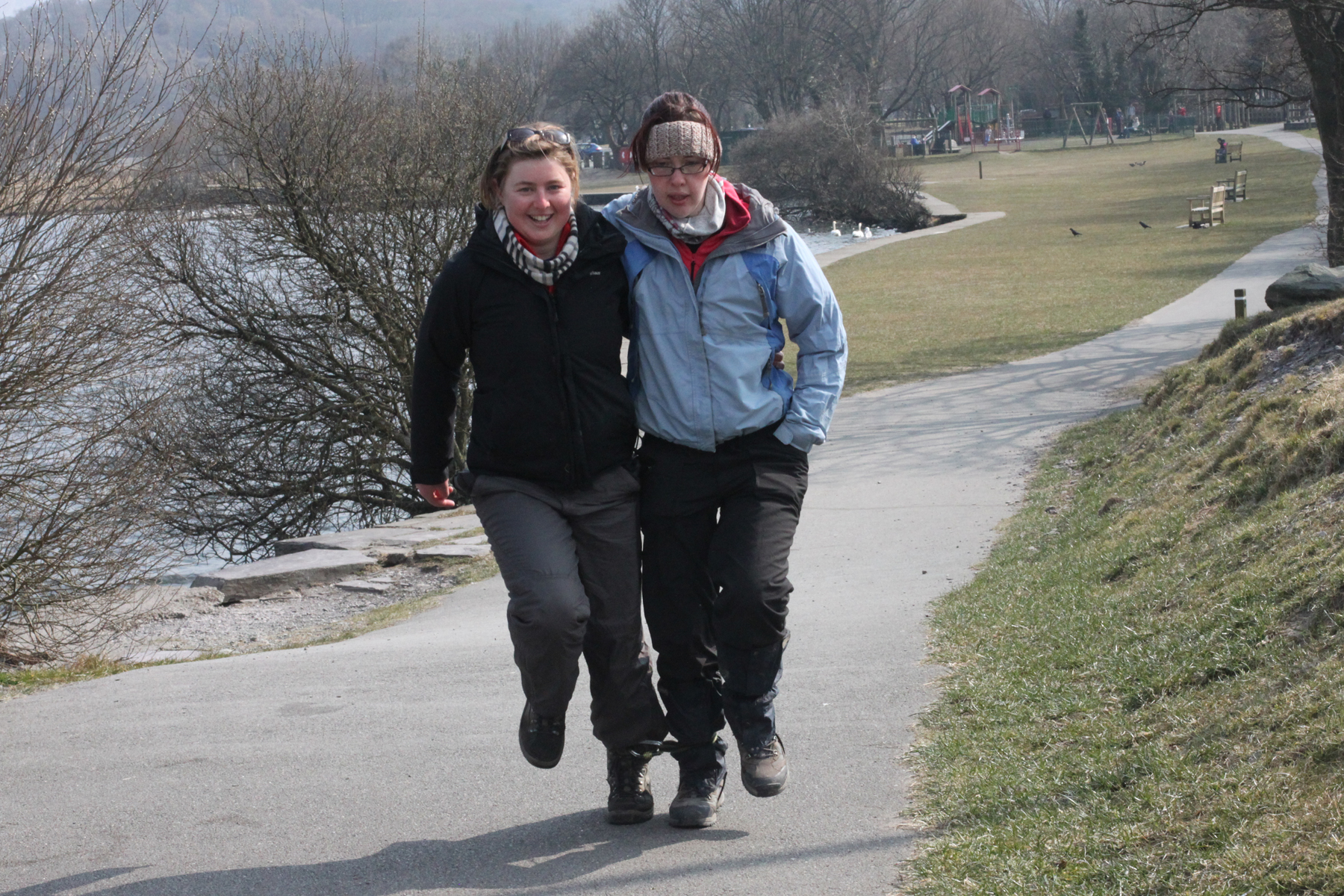Alors c’est parti pour une course à 2 pieds liés !! Good craic. Petit échauffement avec Michelle ! Parfait synchronisation. On courait comme si on avait les pieds tout à fait libres =)