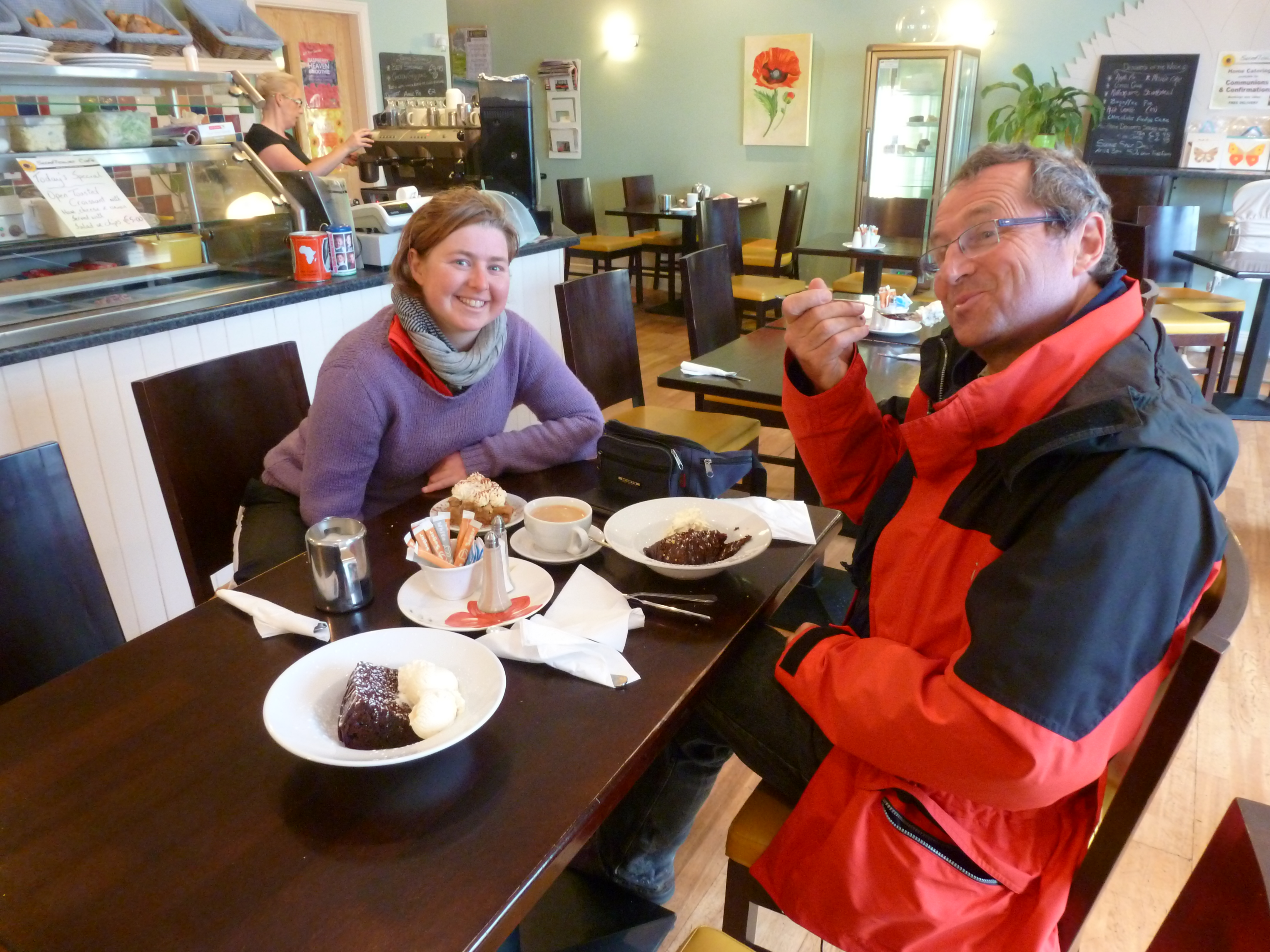 Mais ça fait partie du voyage ! En tout cas, on est arrivé à Dublin en début de matinée. On a pris le ferry pour Holyhead au Pays de Galles. Enfin j’ai pu m’assoupir ! M’étaler sur les canapés du ferry ! J’ai fait la rencontre de Sonya et Eke, une allemande et une hollandaise avec qui on a décidé de former notre « groupe cuisine » pour éviter de cuisiner tous les soirs chacune de notre côté. C’est bien plus convivial !