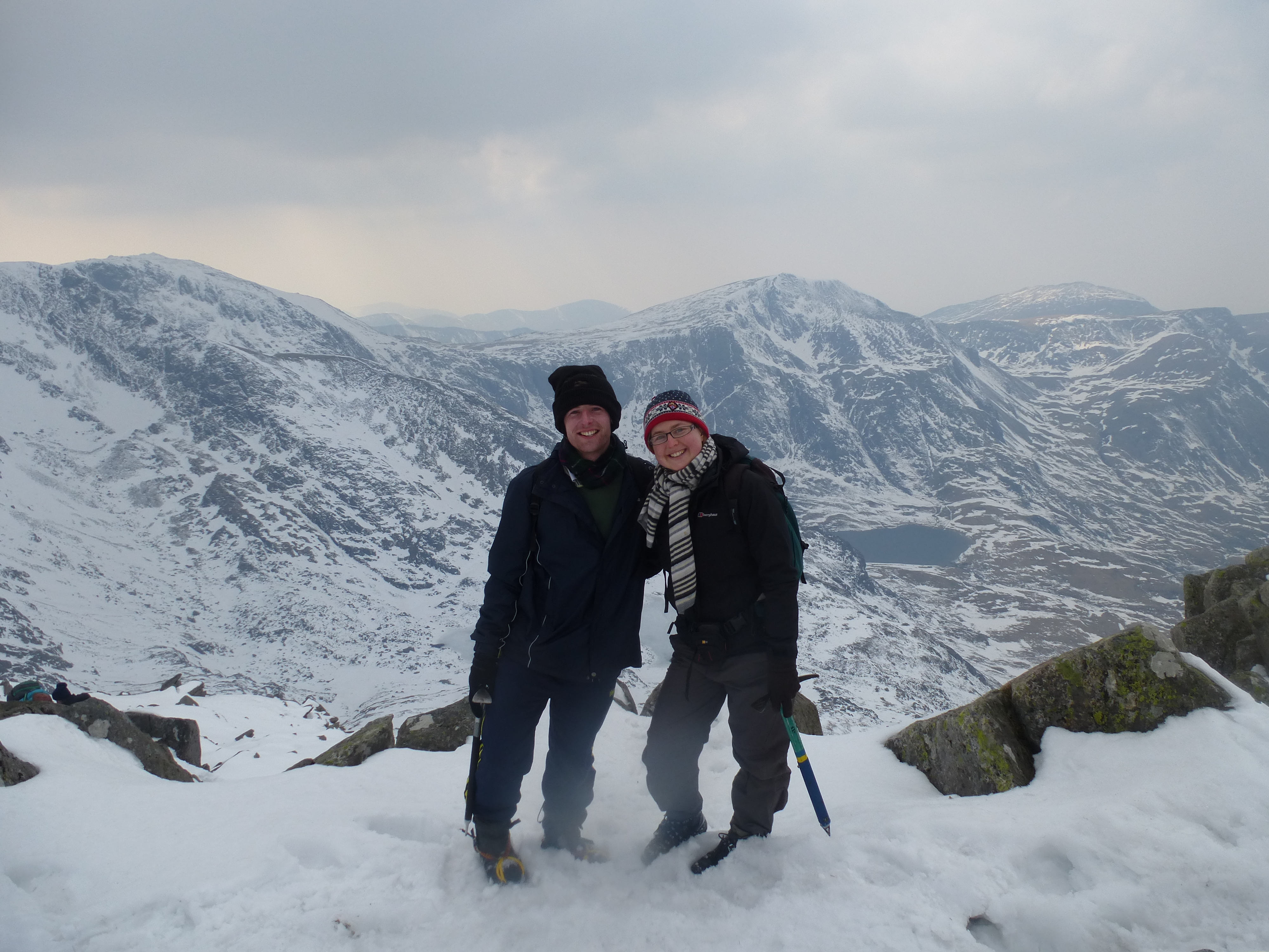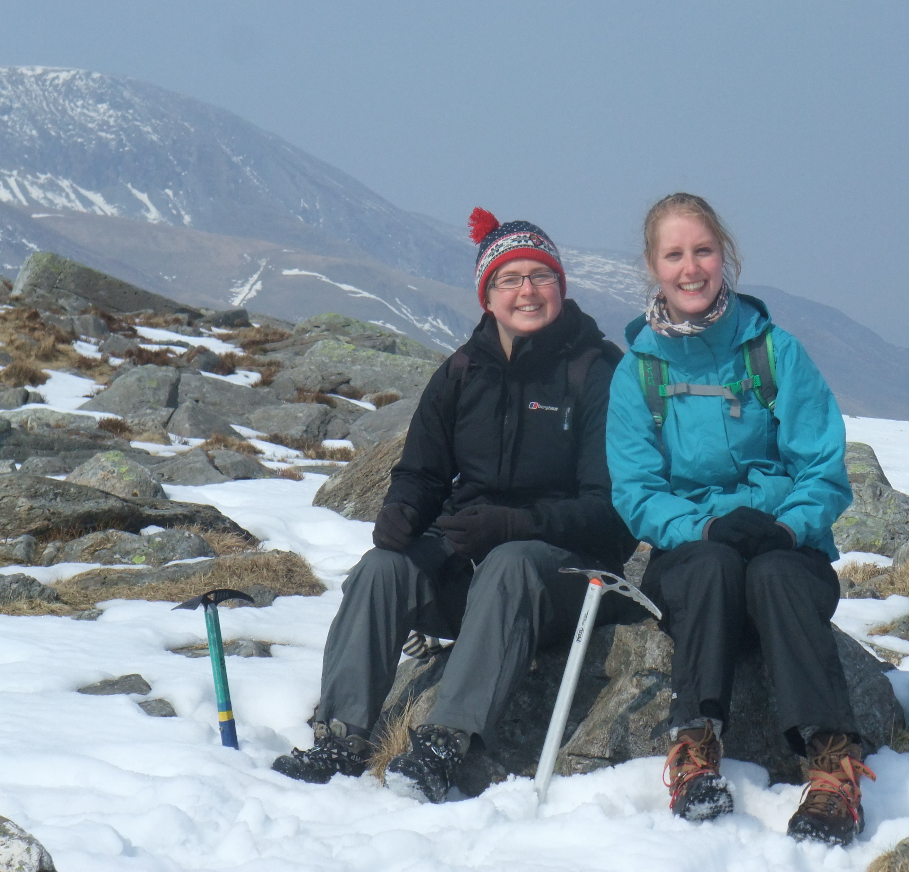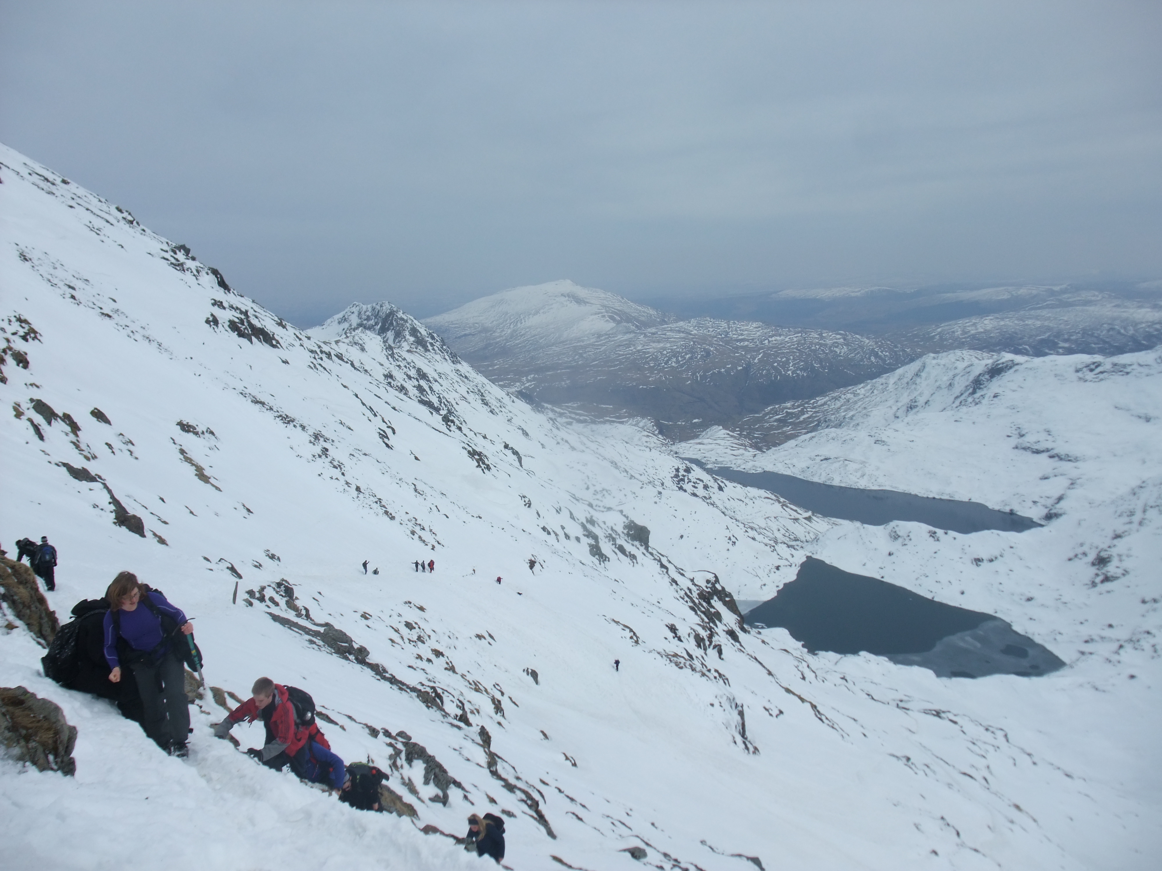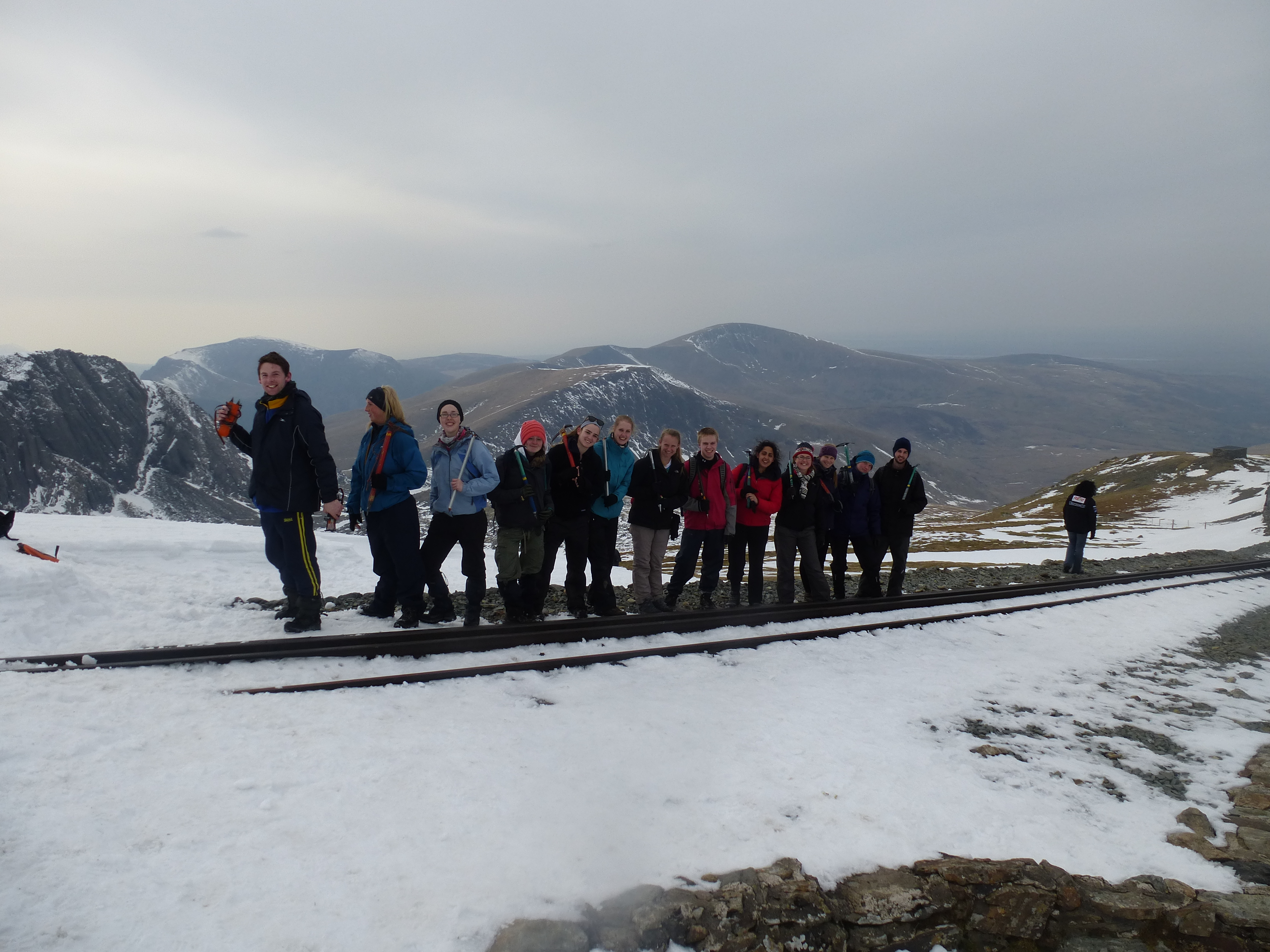 L’été, il y a un petit train qui monte au sommet depuis Llanberis. On est redescendu le long de la voie ferrée avec nos piolets. Du coup ça faisait carrément les nains de blanches neige.. D’où la magnifique picture de la colonie de nains!