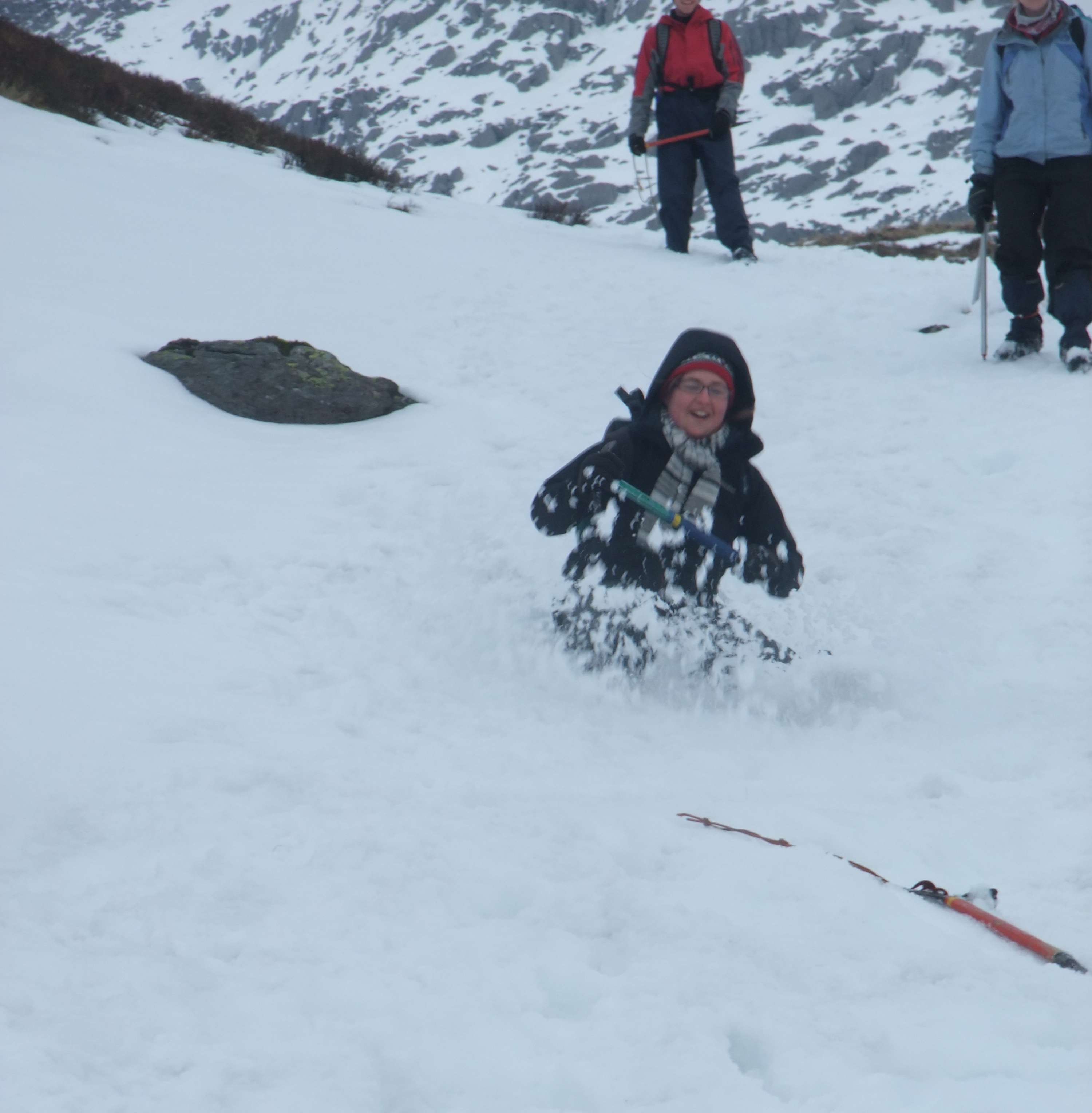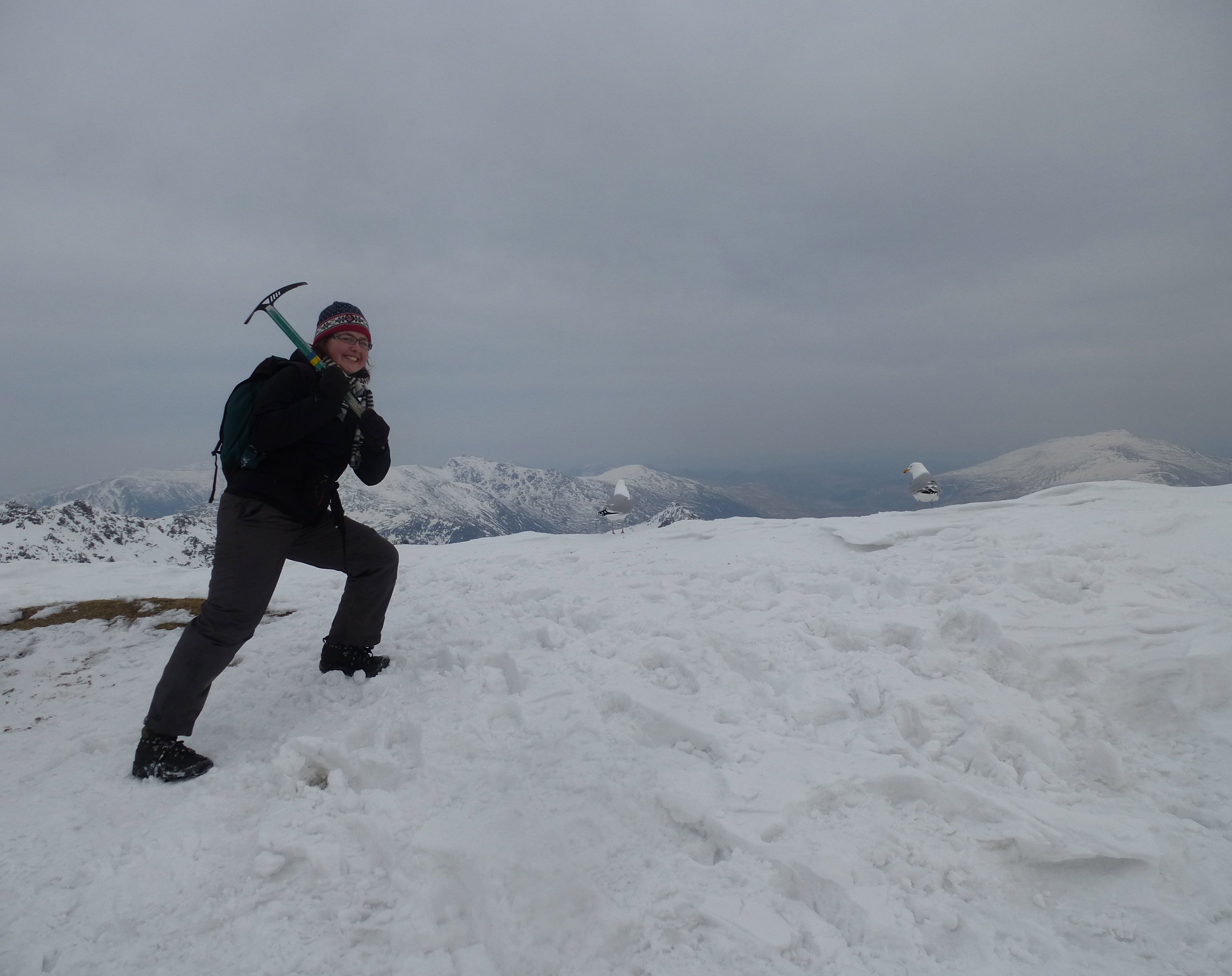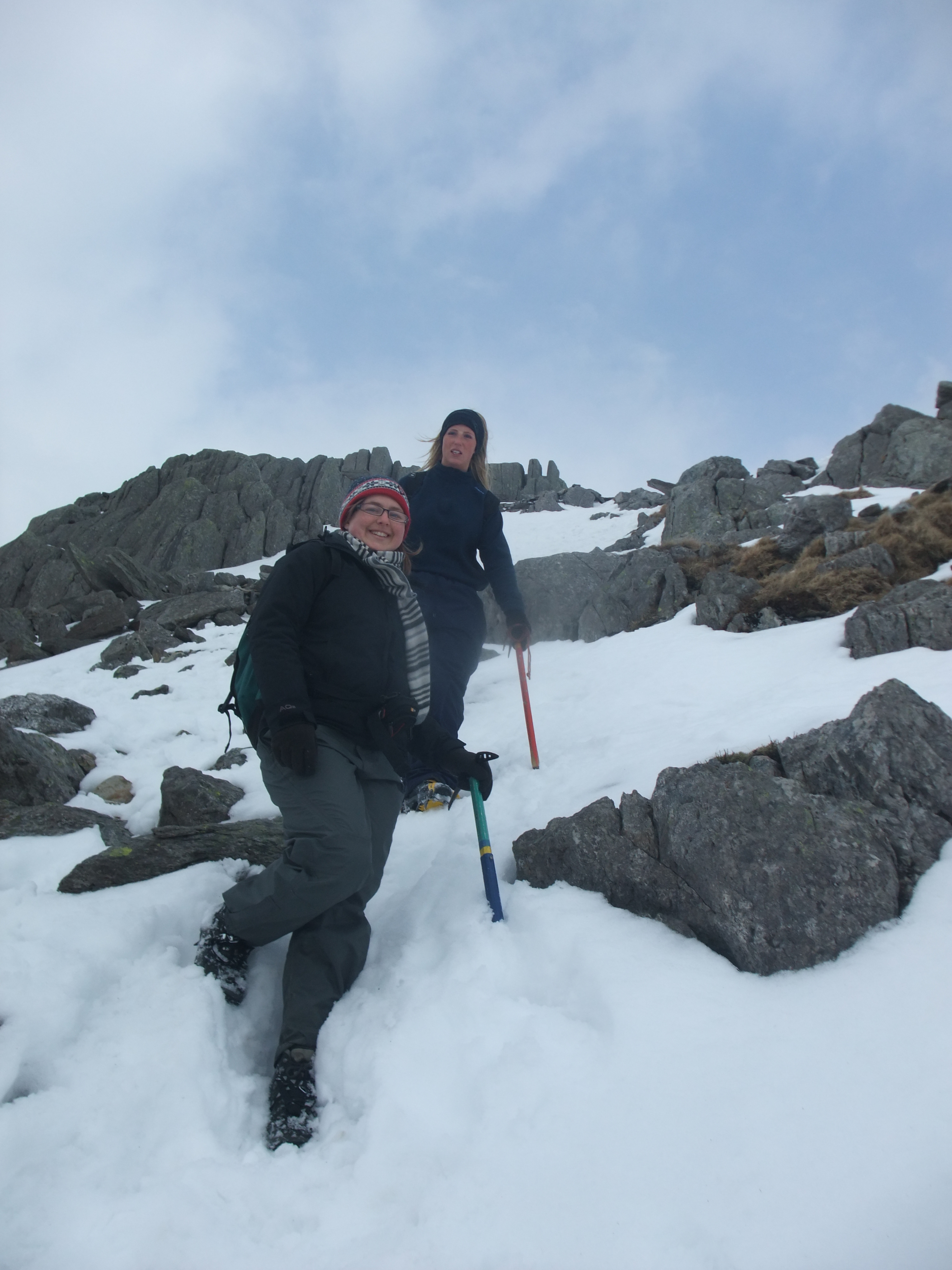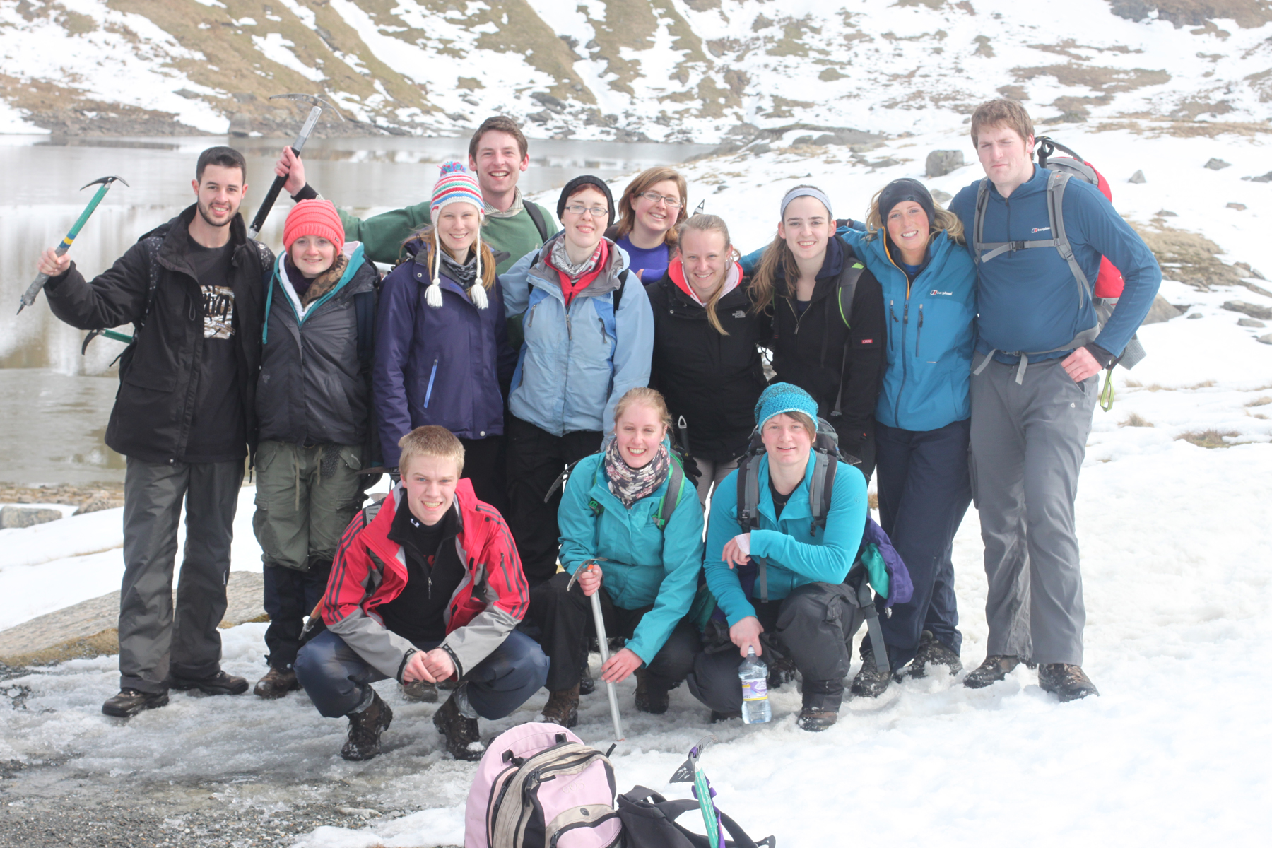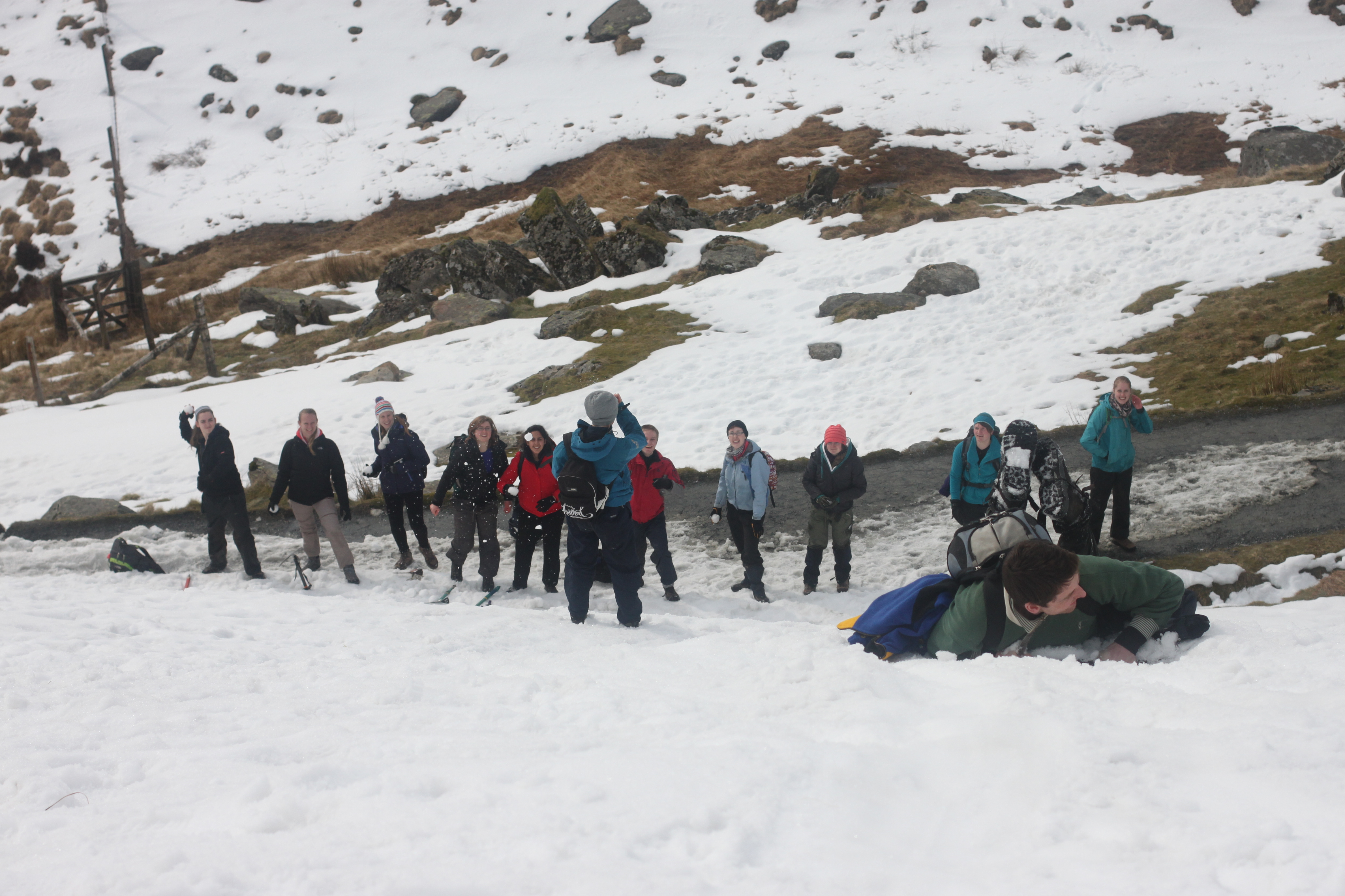 C’est parti pour le premier jour complet d’activité. Au programme, ce sera rando. Etant donné que c’était enneigé vraiment de partout, les leaders ont décidé de nous faire faire une petite baladette histoire de nous former à utiliser les ice axes (autrement dit, les piolets) et les crampons. Donc on s’embarque sur les chemins, on fait une petite pause « exercice ». A la fin de la descente bien sûr petite attaque à coup de boules de neiges!