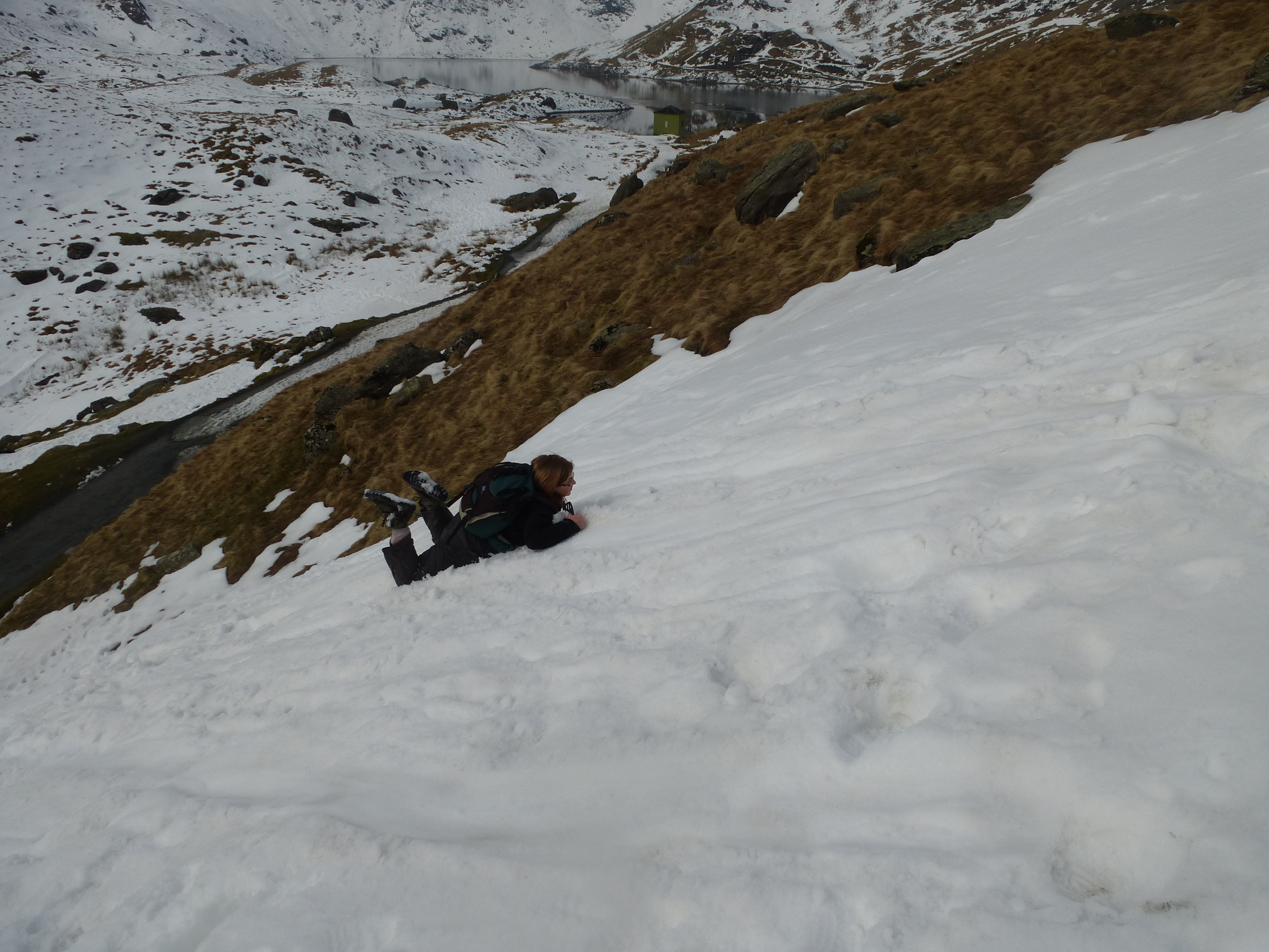 En redescendant, on a fait les paresseux. On a enlevé nos crampons sur une petite distance et on s’est laissé glissés sur les fesses vu que c’était suffisamment pentu. Un bon délire ! Même si bien sûr on était trempés après.