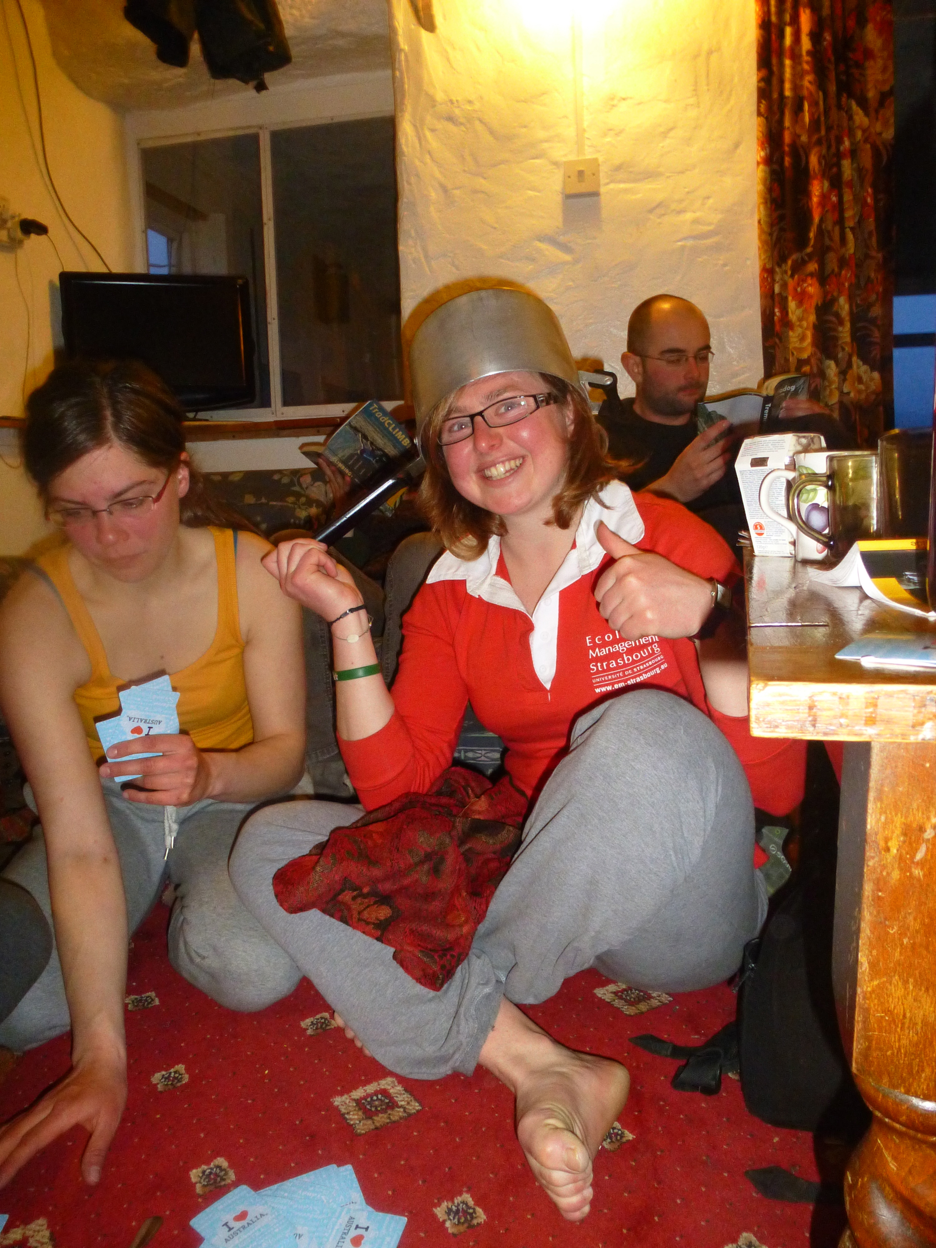 Le soir jeux de cartes, lecture au menu ! On a fait un trou du cul et celui qui l’était devait porter une casserole pendant toute la durée de la prochaine partie. C’est super lourd en fait!