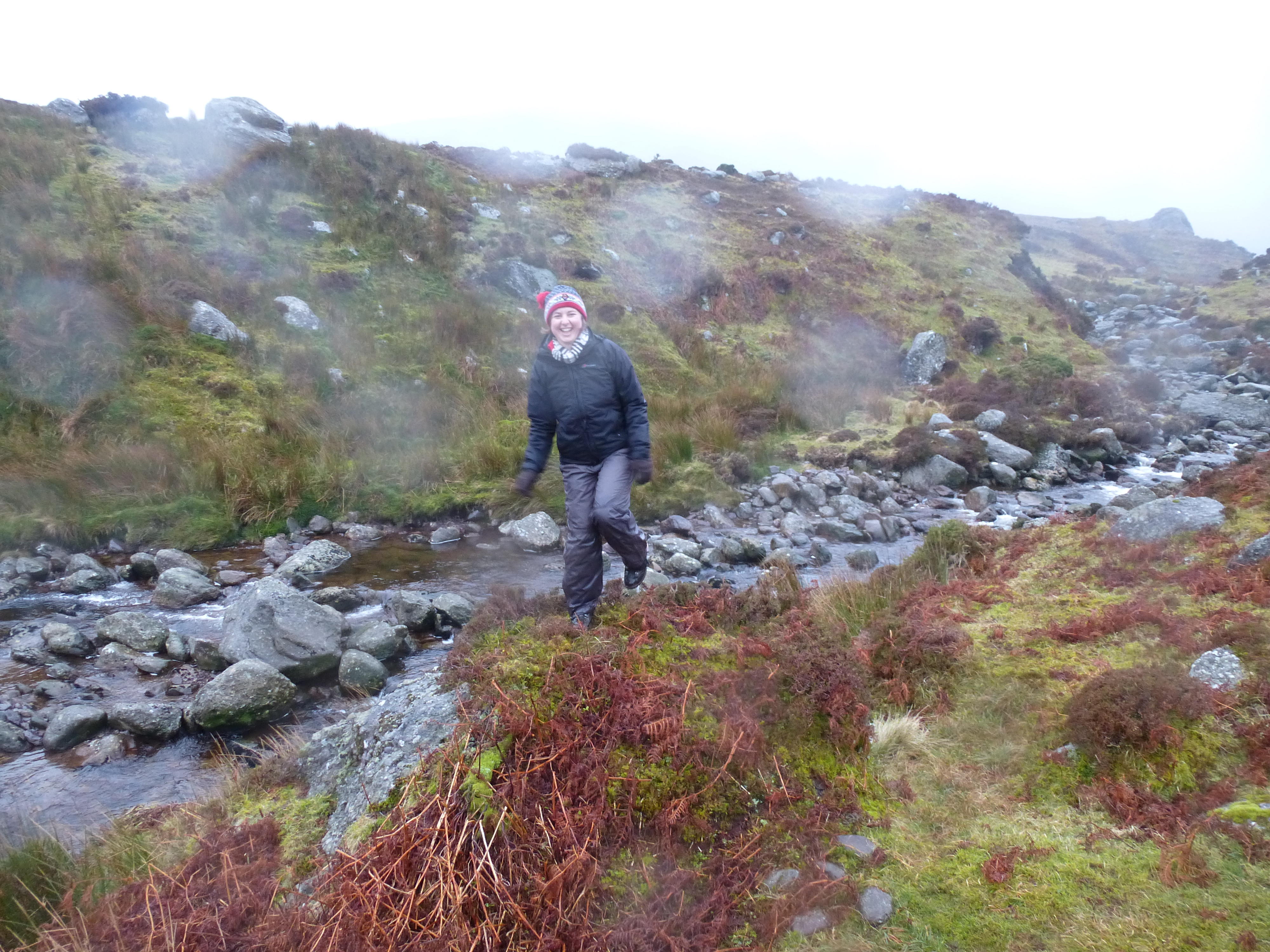 Après 5h de marche, du brouillard, de la pluie, de la neige, des flaques d’eau/boue et une bonne caillante, voilà que nous achevons la rando !!