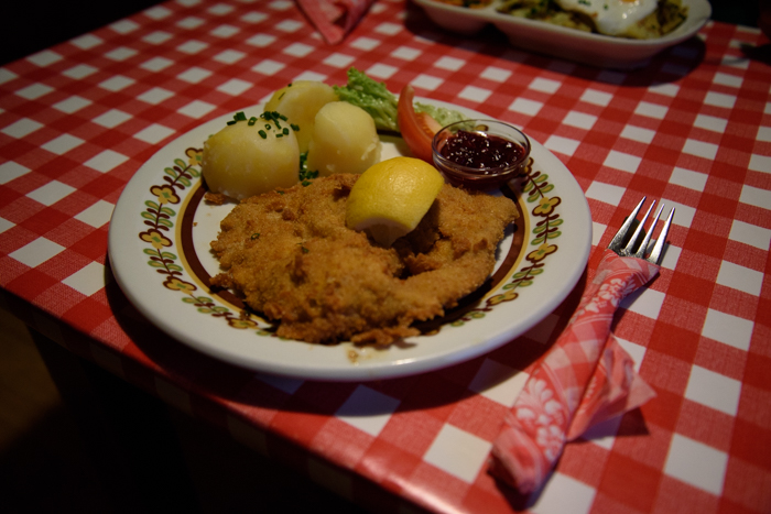 Le wiener schnitzel : L’escalope à la viennoise est un mets traditionnel de Vienne, constitué d’une fine tranche de viande enrobée de chapelure et frite.