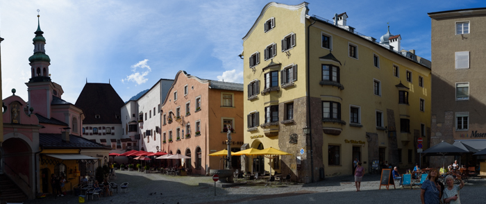 Innsbruck est située dans l’ouest du pays, dans une vallée au cœur des Alpes, elle est la deuxième plus grande ville d’Europe dans cette situation, après sa jumelle alpine Grenoble. Elle est la capitale du Land du Tyrol, et est traversée par la rivière l’Inn, comme son nom l’indique, « Brücke » veut dire « pont », c’est à dire la ville du pont de l’Inn. Nous suivons ce fleuve depuis l’Engadine suisse où il prend sa source. C’est de plus une ville magnifique construite au pied des montagnes dont les sommets culminent à plus de 2500m d’altitude, impossible de les rater, nous pouvons les voir facilement depuis le centre ville. Le centre ville médiévale nous ravit par son architecture, par ses bâtiments colorés et peints qui donne à la ville une belle âme pleine de vie et d’histoire.