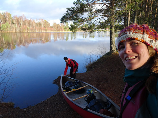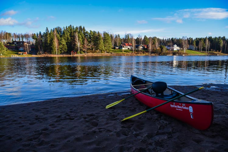 Nous en profitons pour louer un canoé et pagayer sur le lac. C’était un rêve de pouvoir faire du canoé ou du kayak en Suède car avec tous ces lacs et ces îlots, c’est un sport fréquemment pratiqué par les suédois ! En cette saison nous étions seul à naviguer sur le lac mais le froid était supportable!