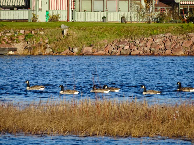 Notre route nous fait passer par de jolis anciens villages en bois, comme on pourrait traverser des anciens villages en pierre en France. Peu de gens y habitent toute l’année, ce qui donne un peu une sensation de village fantôme mais une belle tranquillité. Les mats de la fête du midsommar étaient encore dressés depuis le solstice d’été bien que les fleurs aient fanées et que les drapeaux soient retirés.