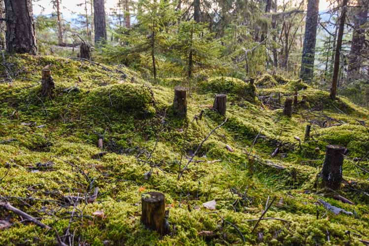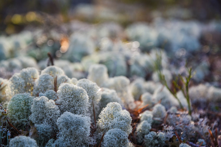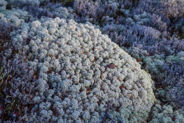Les mousses et lichens sont présents partout, gris,verts ou rosés, ils aiment sans doute toute cette humidité ! Et pour cause, de nombreux lacs, ruisseaux, marais bordent nos chemins.