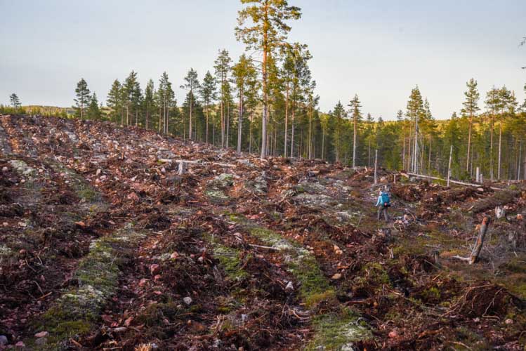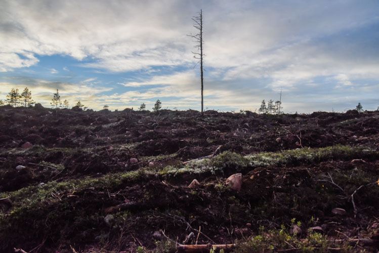 Le lendemain, nous traversons par moments de vrai champs de batailles! Tous les arbres ont été coupés, la végétation autour arrachée, écrasée, la terre retournée sur 70cm de profondeur… Quelle tristesse de voir ces champs sans vie, çà nous fait réfléchir… D’où viens le bois que nous achetons ? Les forêts sont elles si bien gérées ? Y a t il d’autres solutions ? Ces coupes rases sont révoltantes alors qu’il existe d’autres techniques ( taillis irrégulière) respectueuses de l’environnement qui permettent de conserver l’équilibre d’une forêt en exploitation.