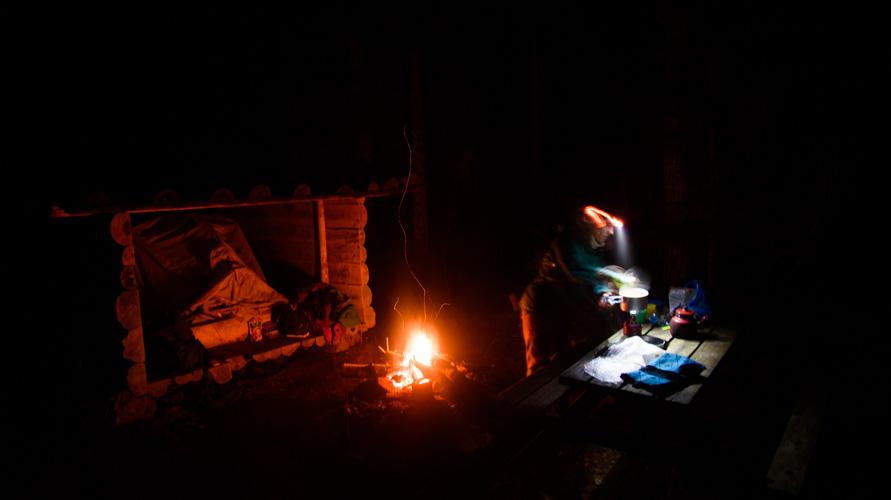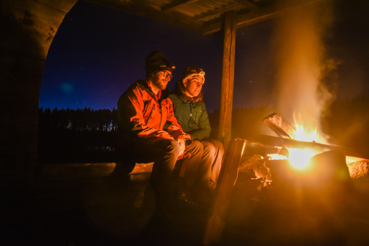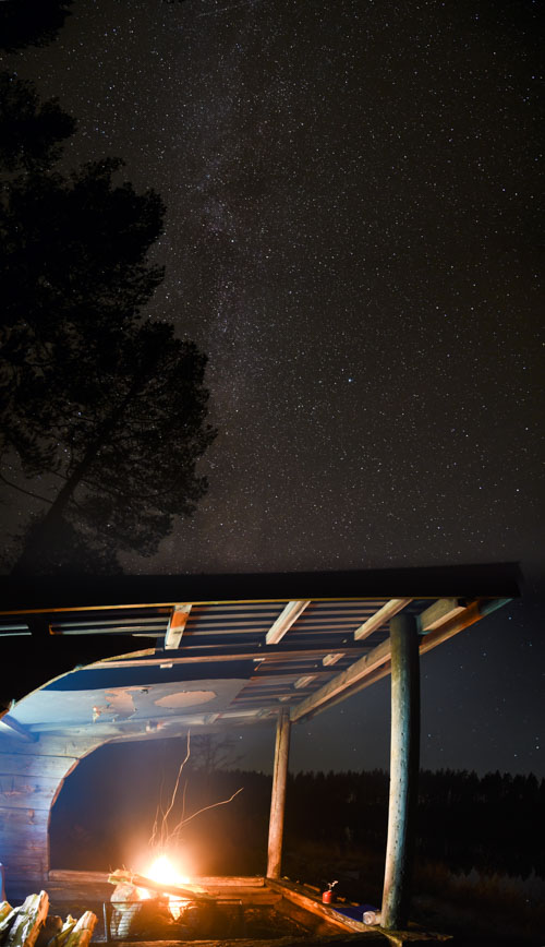 Notre premier bivouac se fait au bord d’un lac, nous posons la tente un peu au dessus dans la forêt pour essayer d’échapper à l’humidité de ce dernier. Le feu de camp nous réchauffe, et nous permet d’admirer les étoiles et leurs reflets sur le lac, au chaud, en entendant le feu crépiter. Les nuits sont fraiches, le matin la tente a un peu gelé !