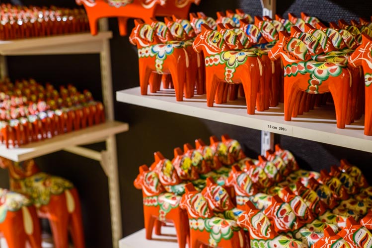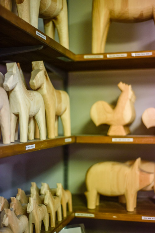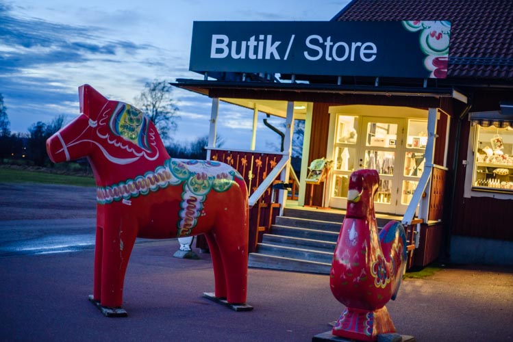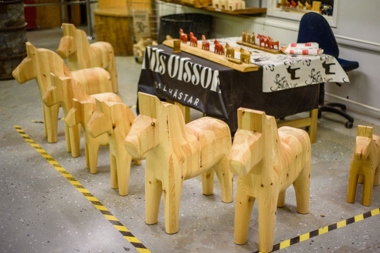 Nous finissons notre visite de Mora en allant voir l’usine des chevaux de Dalarna. Nous voyons ces petits chevaux partout depuis que nous sommes arrivé en Suède mais nous ne comprenions pas pourquoi ! Ces petits chevaux sont fabriqués en Suède depuis les années 1600. Ici les ébénistes de Grannas ont commencé a produire de chevaux de Dalarna (Dalahäst) depuis 1922. Ils les taillent à la mains, puis les peignent et les décorent sur place. Voilà un produit totalement Made in Suède!